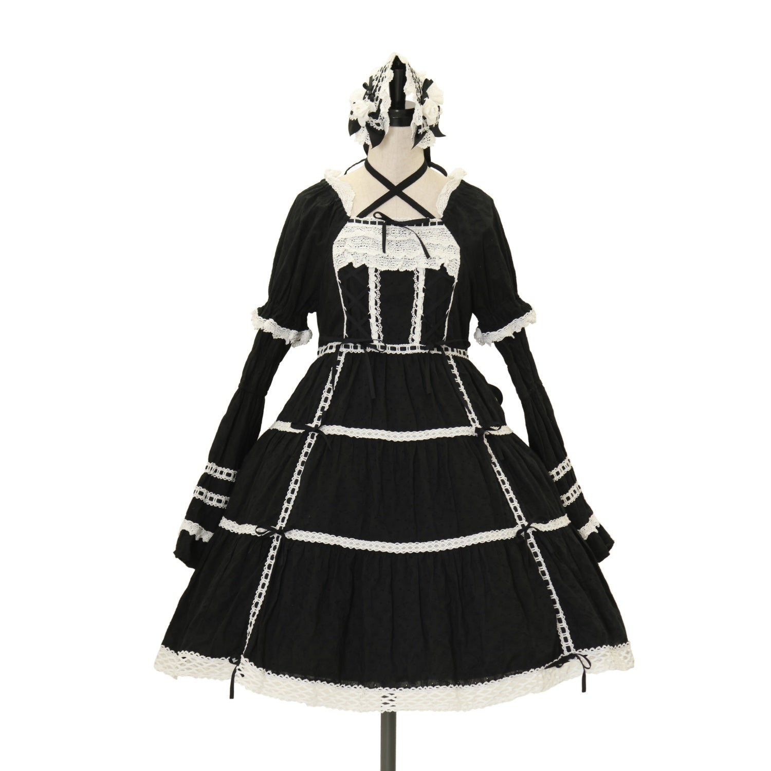 【USED】はわせドールワンピース&ヘッドドレスセット(黒×オフ白)