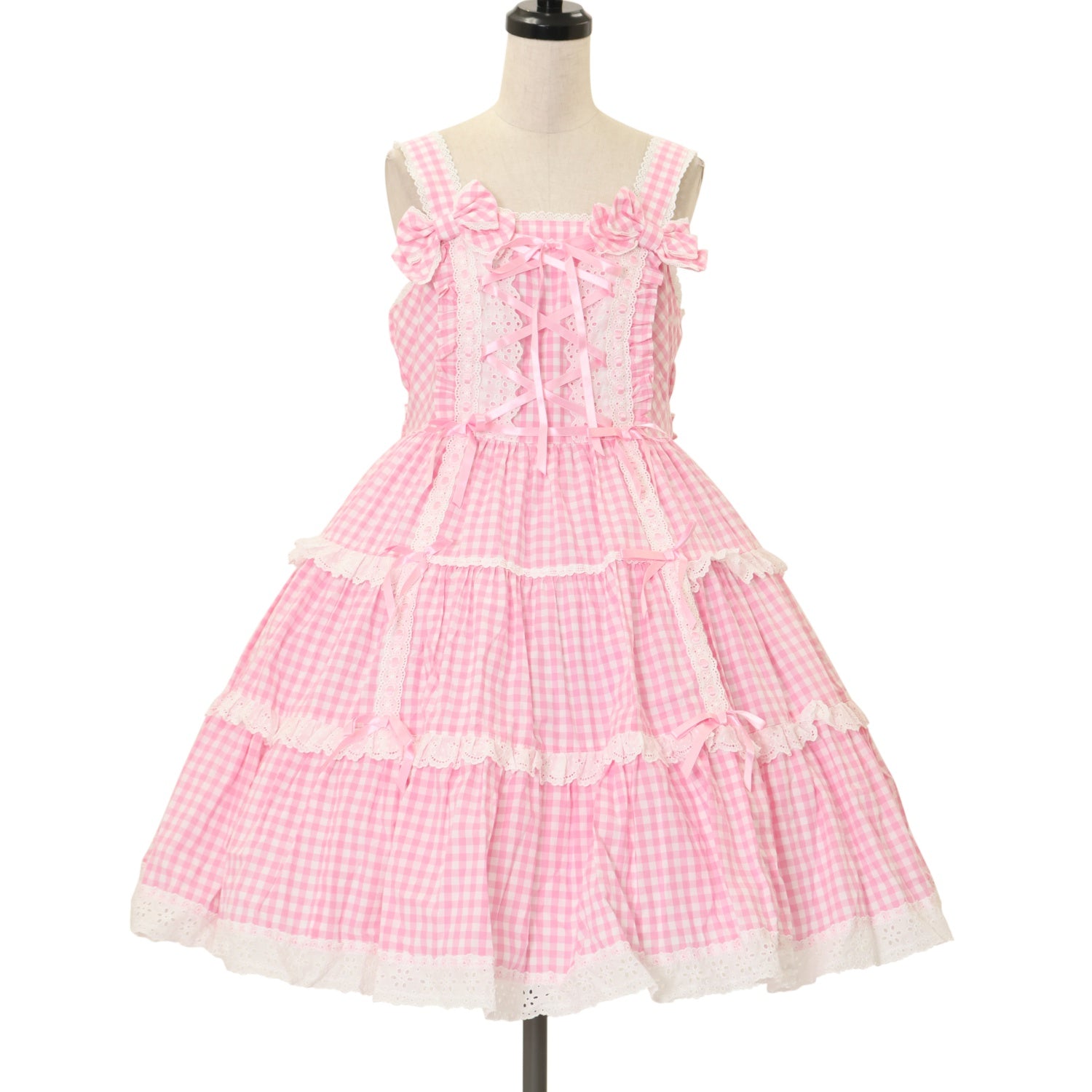 【USED】肩リボンジャンパースカート(ギンガム)