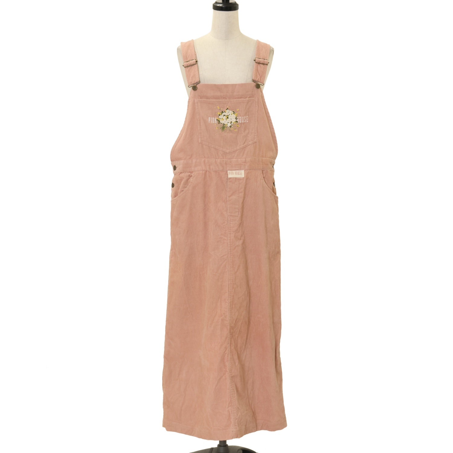 【USED】ブーケ刺繍コーデュロイサロペットジャンパースカート
