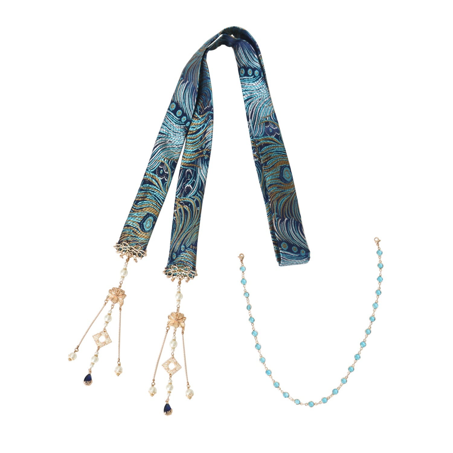 【USED】【Doris Night】孔雀麟 飾りリボン+ビーズチェーンセット