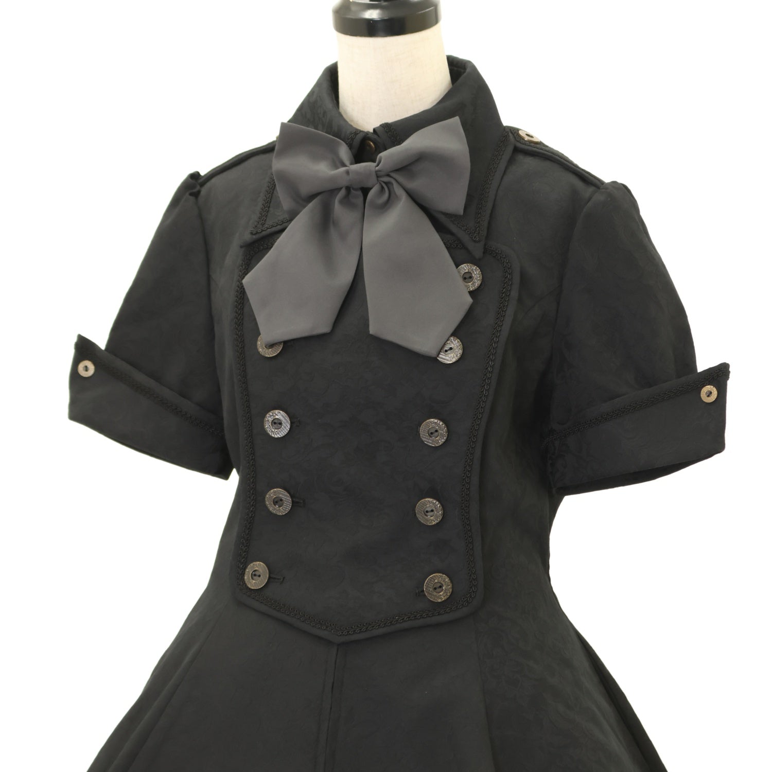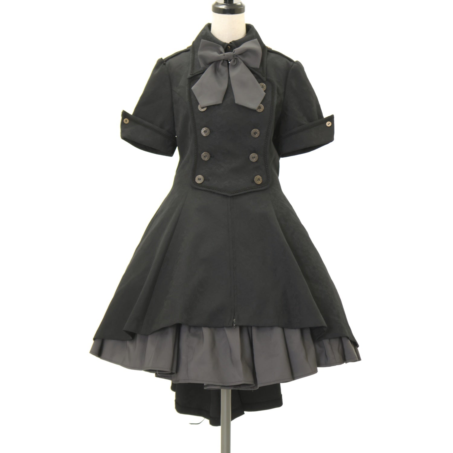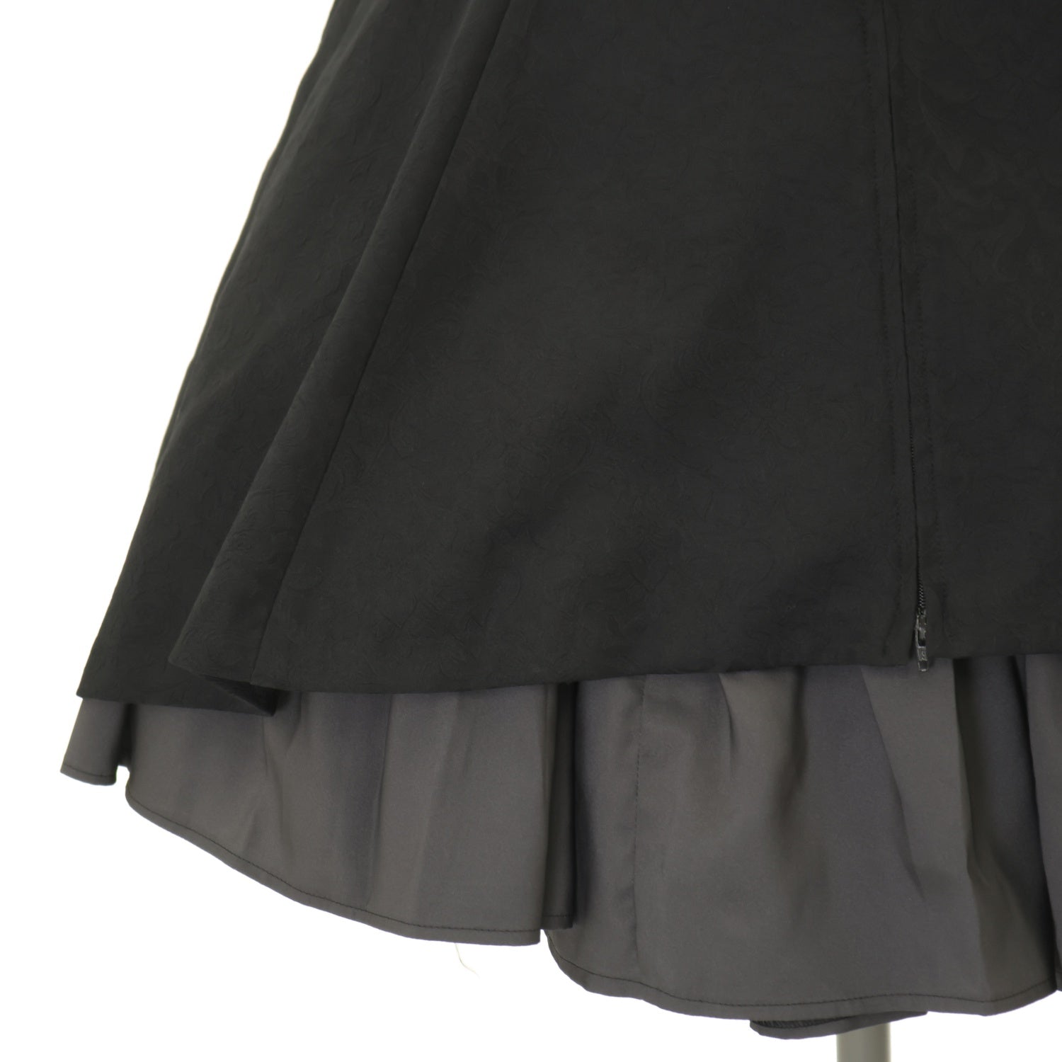 【USED】【Lサイズ】メイファススカート付ジャケットワンピース(ジャガード生地/黒×グレー)