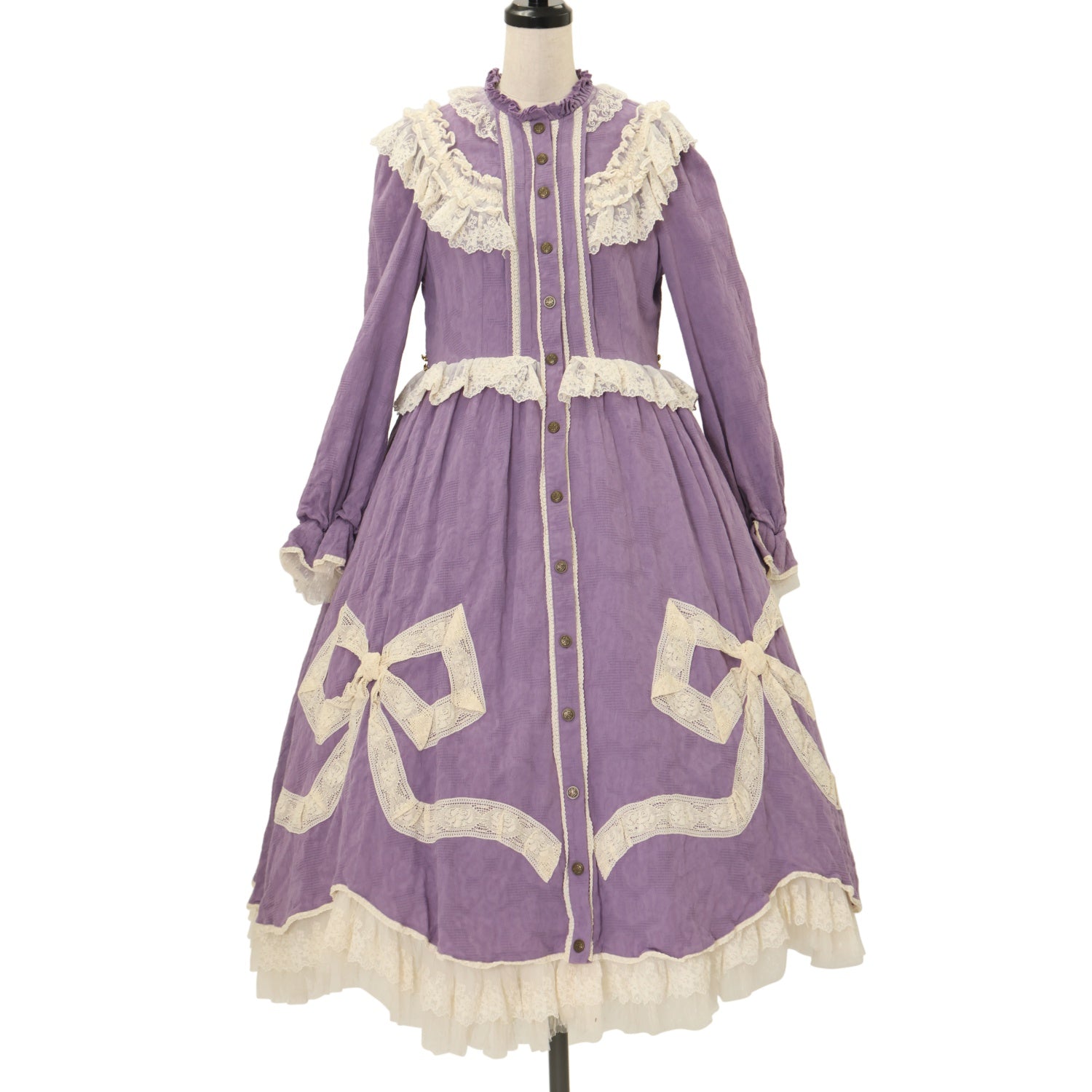 【USED】【Mサイズ】リボンフローラ コットンレースロングワンピース