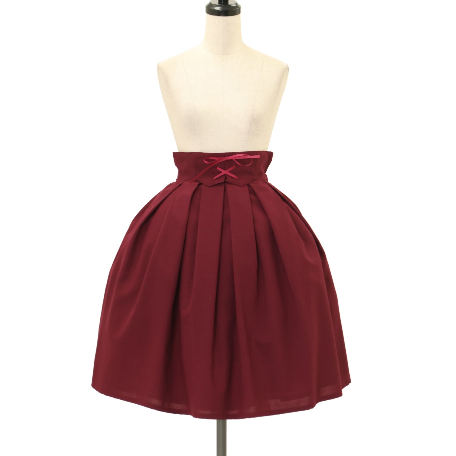 【USED】【White/Mサイズ】編み上げタックスカート