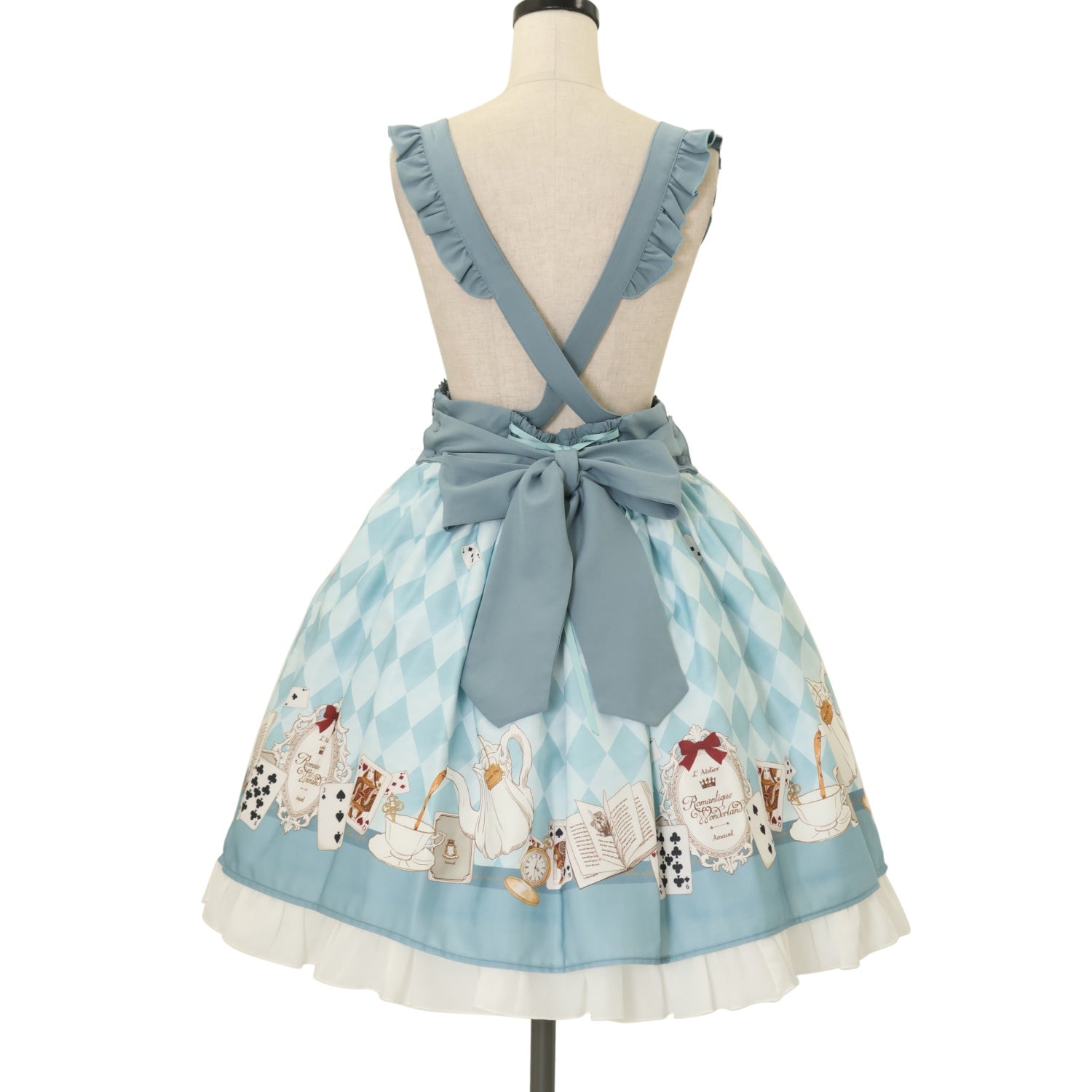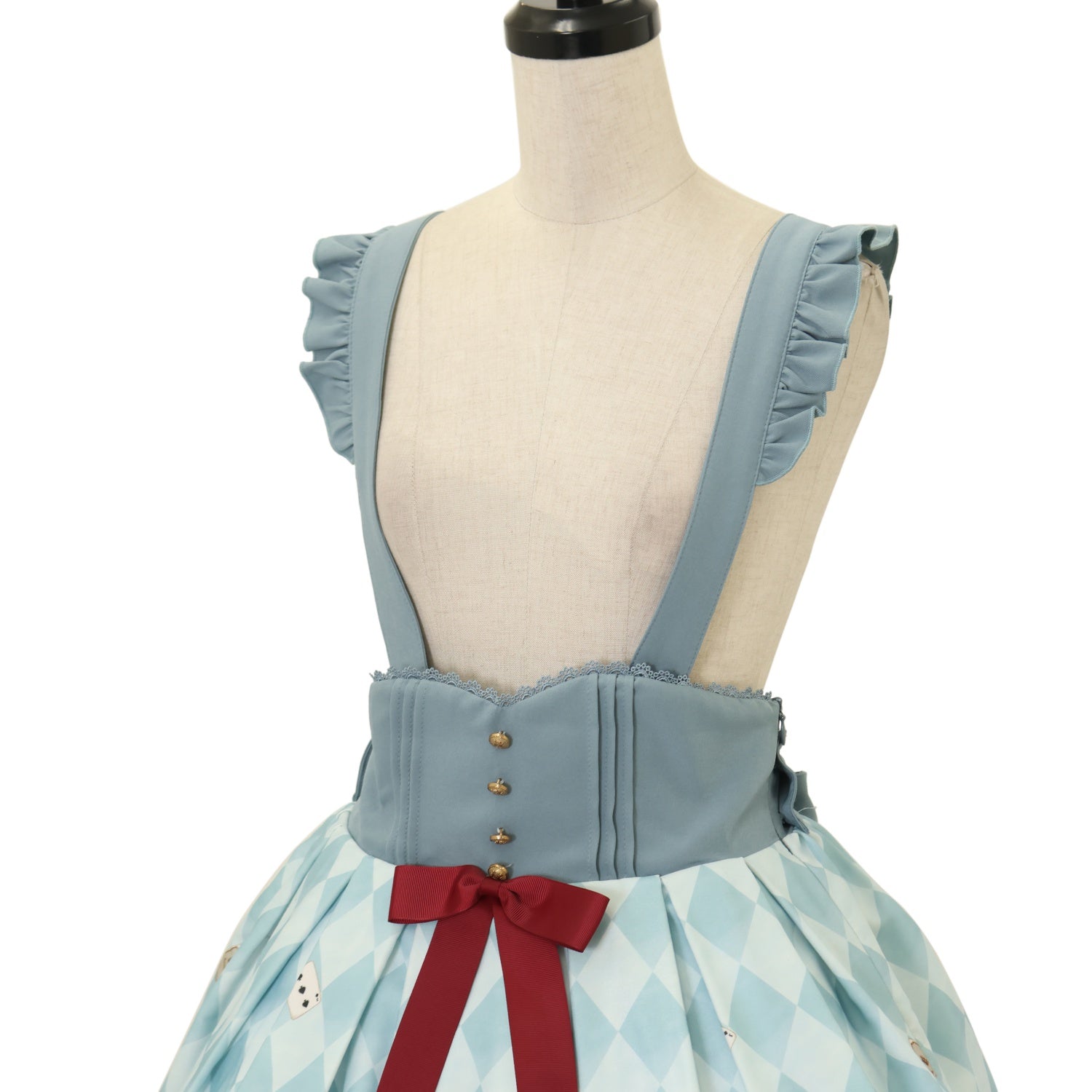 ウエスト編み上げリボンで調節可能 肩紐3段階で調節可能 ウエストリボンブローチ取り外し可能 |