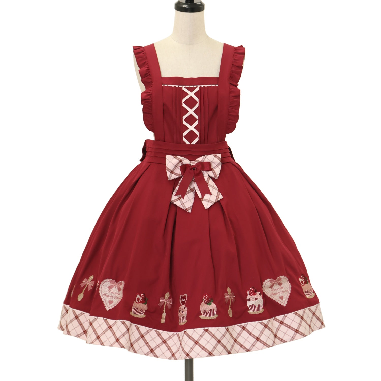 【USED】いちごのカップケーキエプロンジャンパースカート