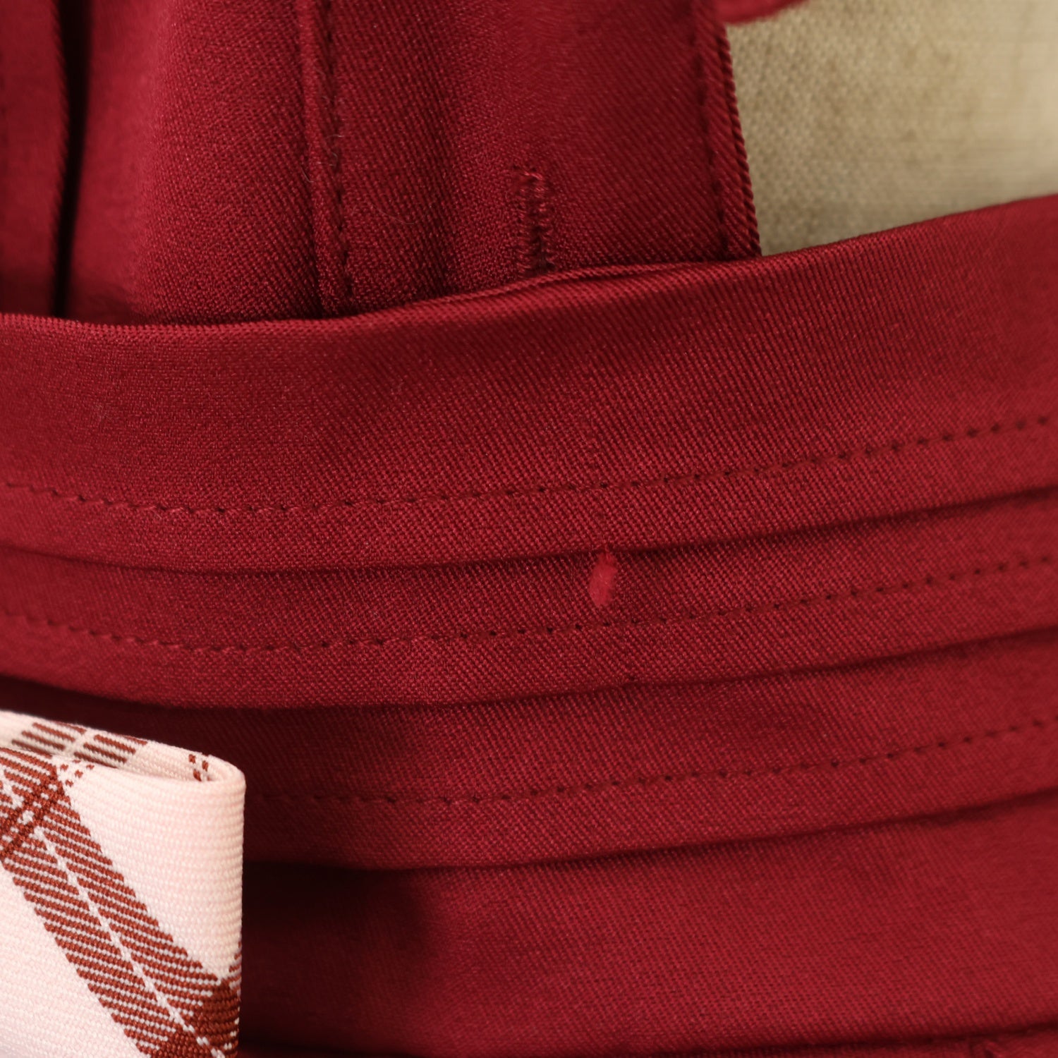 左ウエストに引っ掛け跡 リボンブローチ(小)にほつれ |