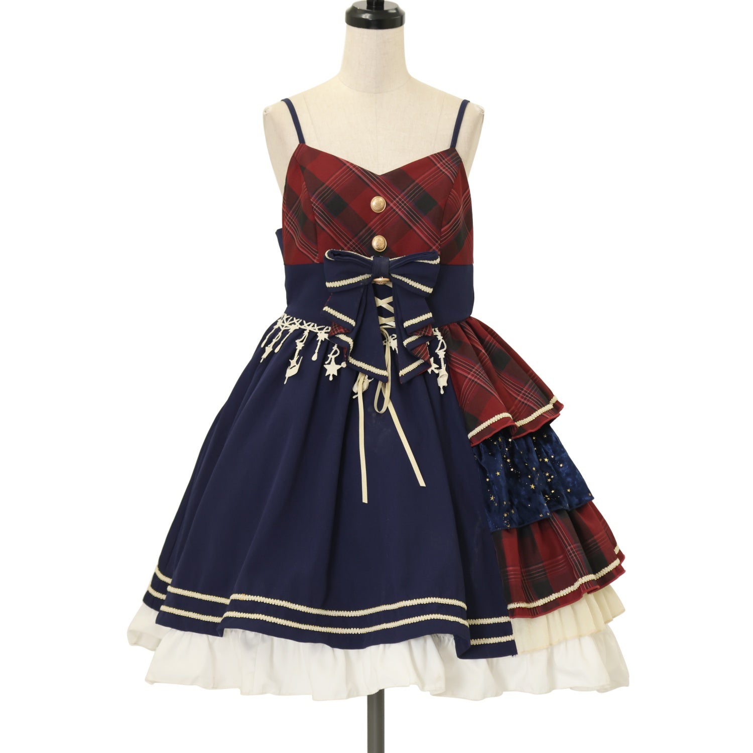 【USED】【Mサイズ】シャイニーアイドルジャンパースカート(ネイビー+レッドチェック)
