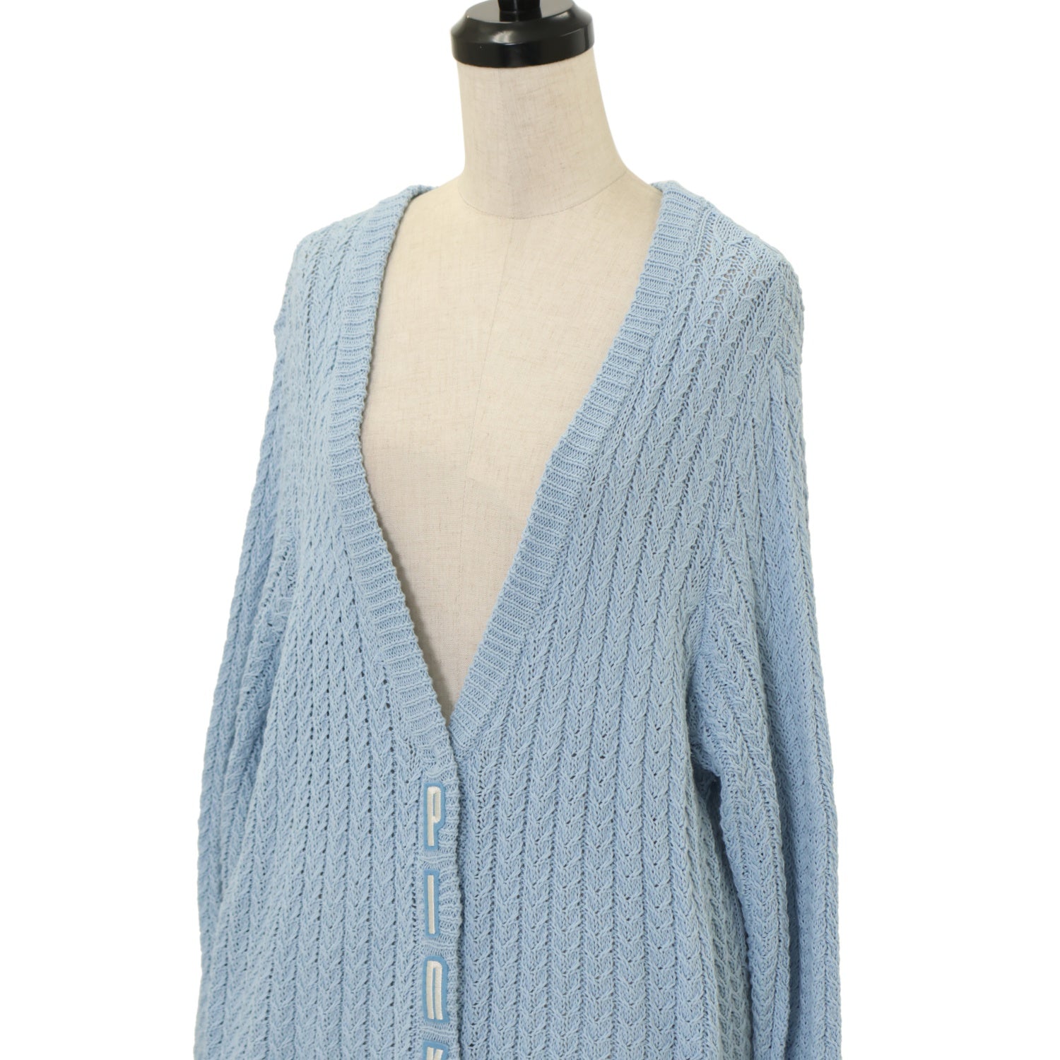 【USED】ロゴワッペン使い透かし編みニットカーディガン