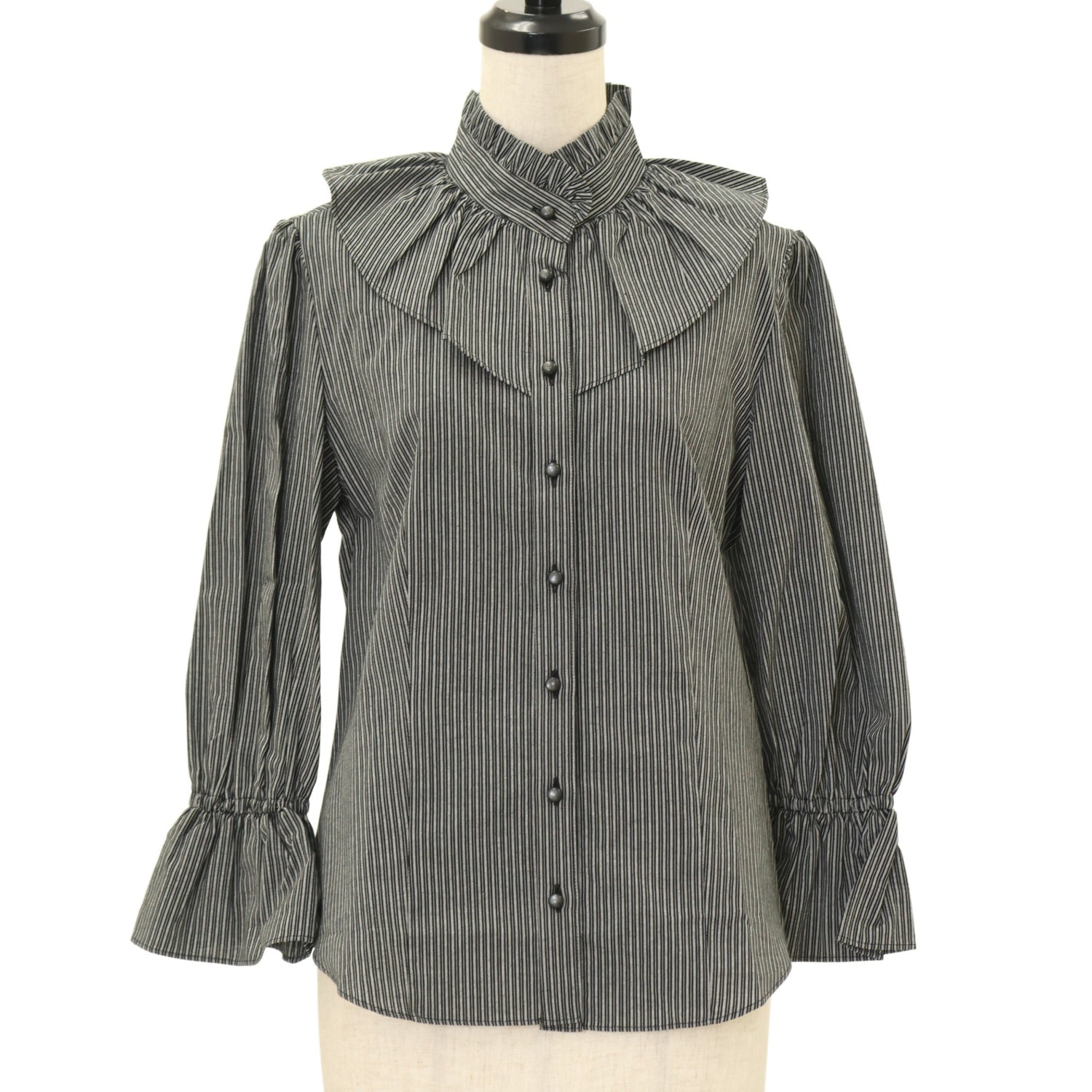 【USED】【Mサイズ】スタンドカラーフリルブラウス