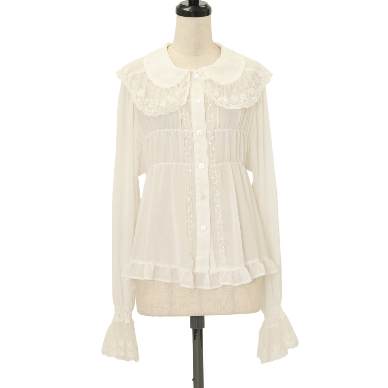 | 商品状態 | 使用感あり 襟ぐりに黄ばみ 袖口レースにやや黄ばみ・くすみ 前立てに糸つれ |