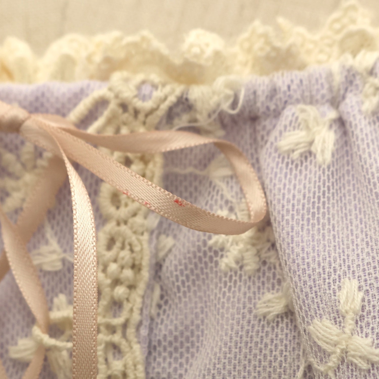 | 商品状態 | 使用感あり 黄ばみ 裾に複数の汚れ 各ゴムに伸び リボンに汚れ |