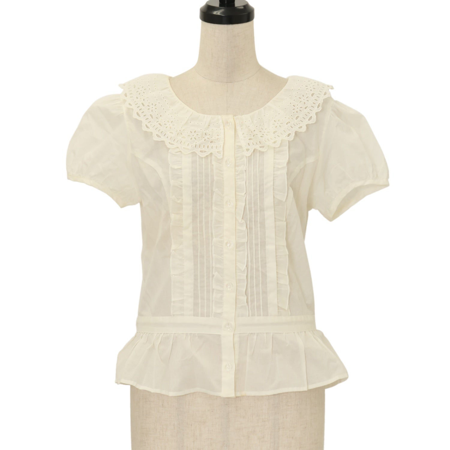 【USED】コットンレースカラーパフブラウス