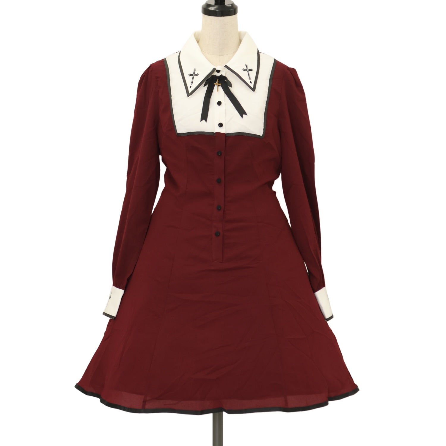 【USED】クロス刺繍衿 ヨーク配色ワンピース