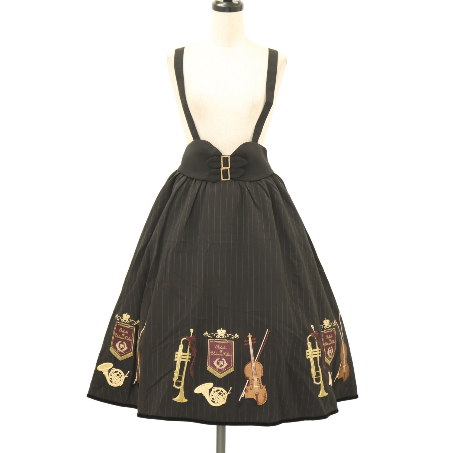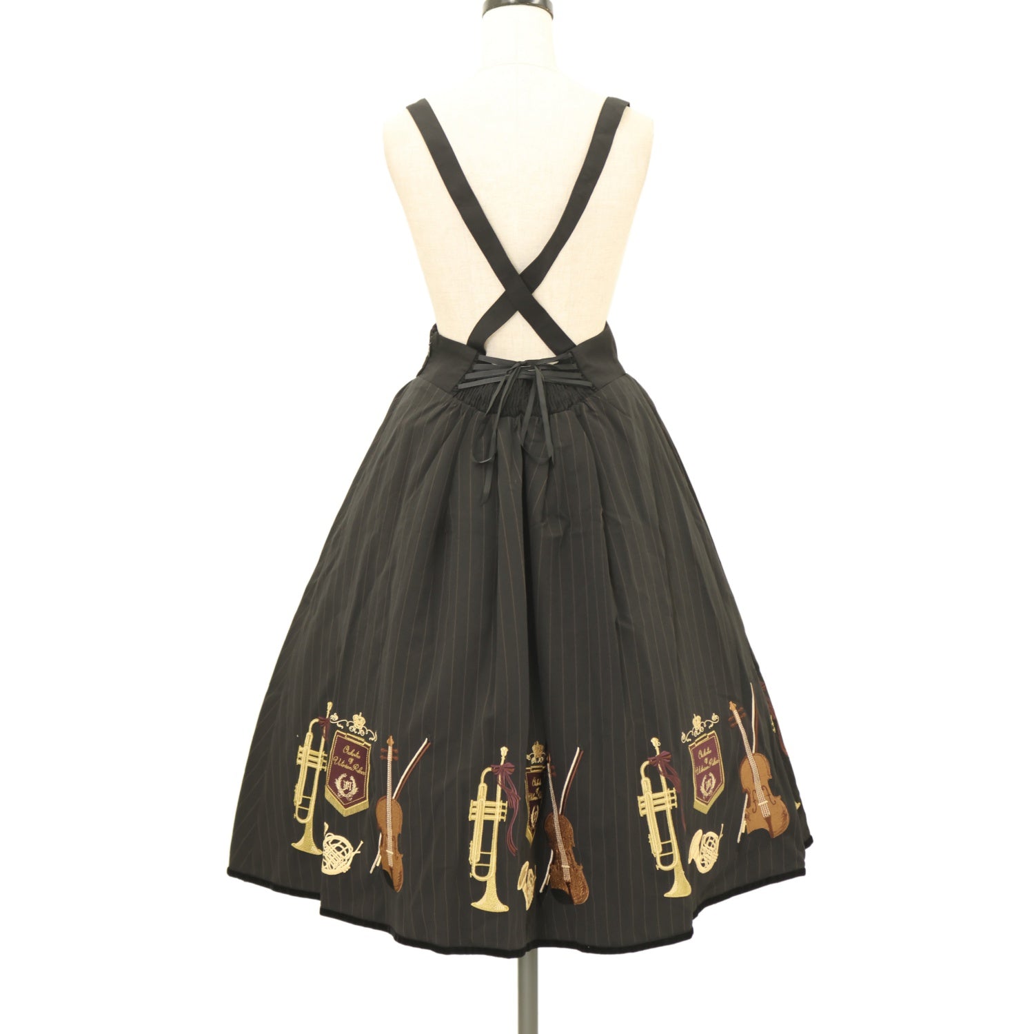 【USED】楽器刺繍入り サスペンダー付ロング丈スカート