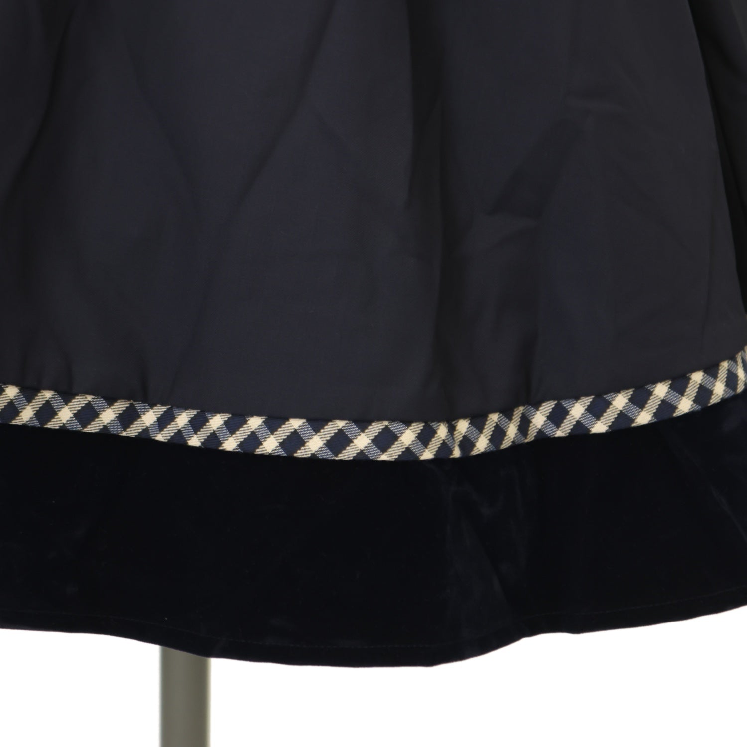 【USED】リボンブローチ付 裾配色チェック柄切替ジャンスカ