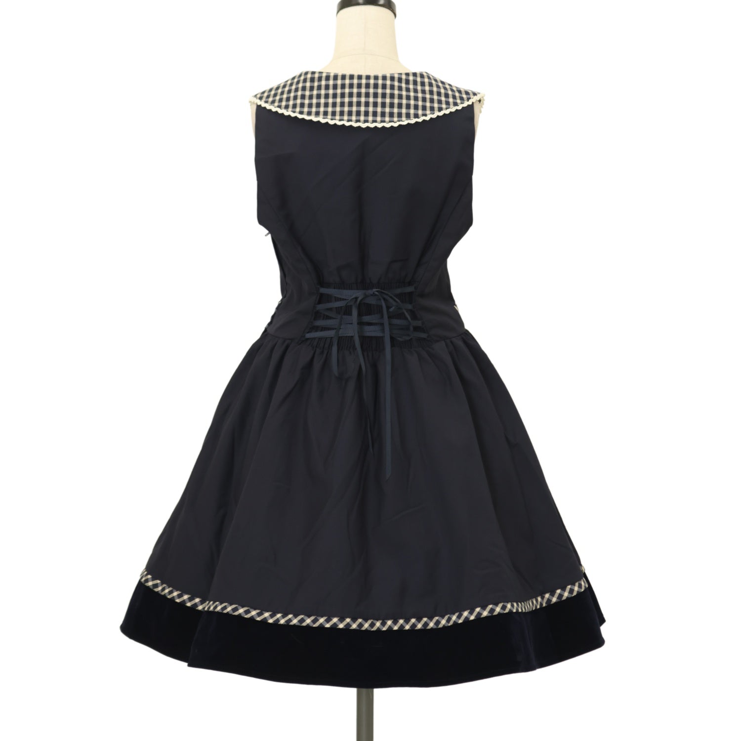 編み上げリボンで調節可能 |
