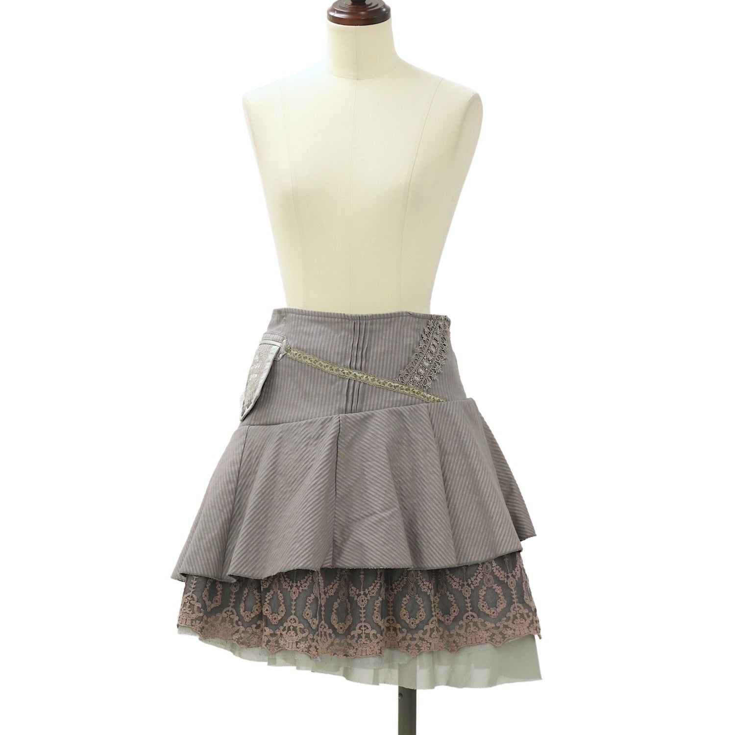 【USED】ANGELO ストライプティアードレーススカート