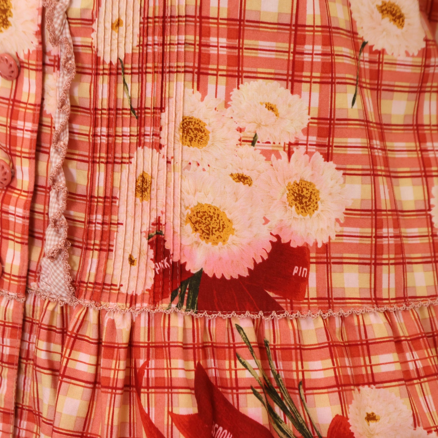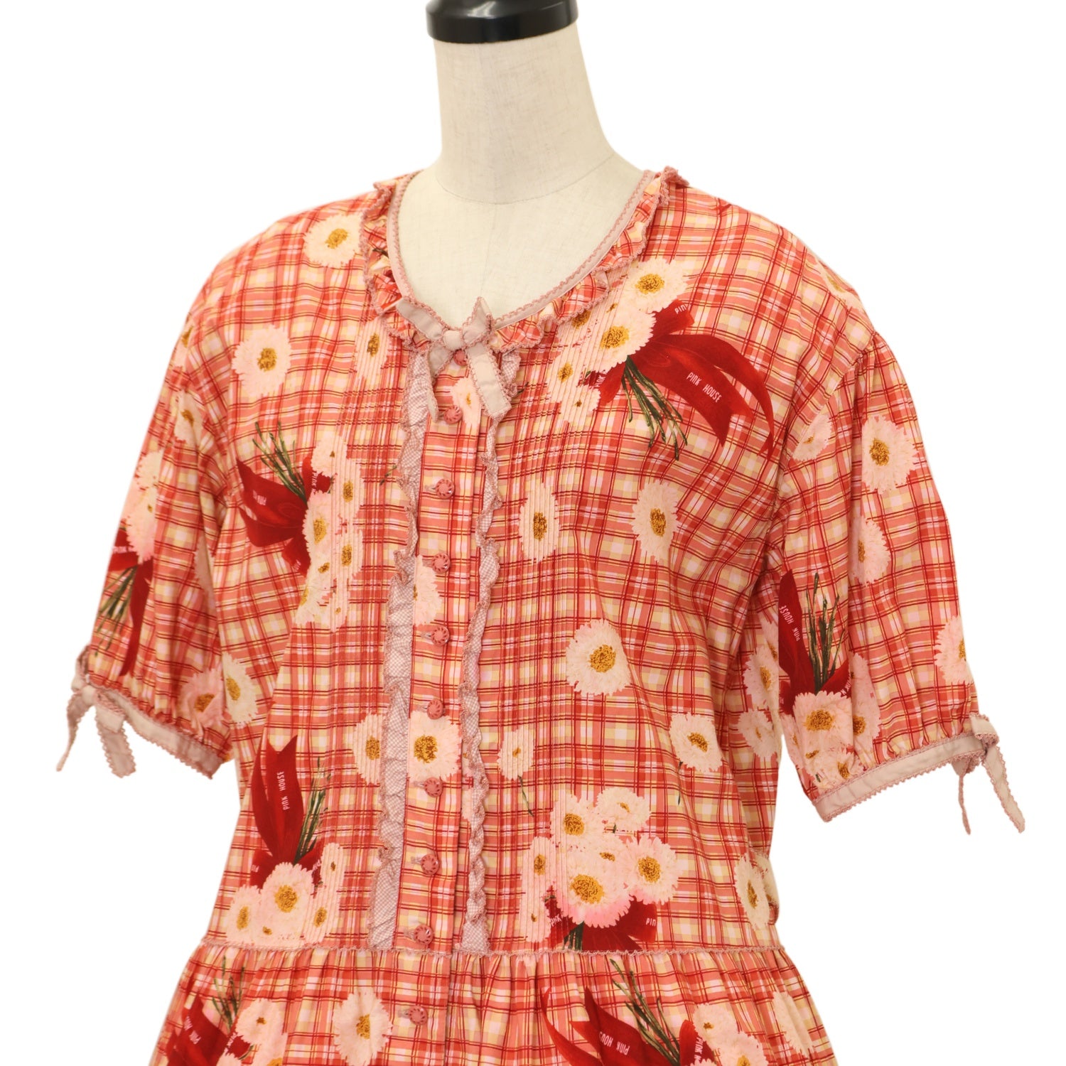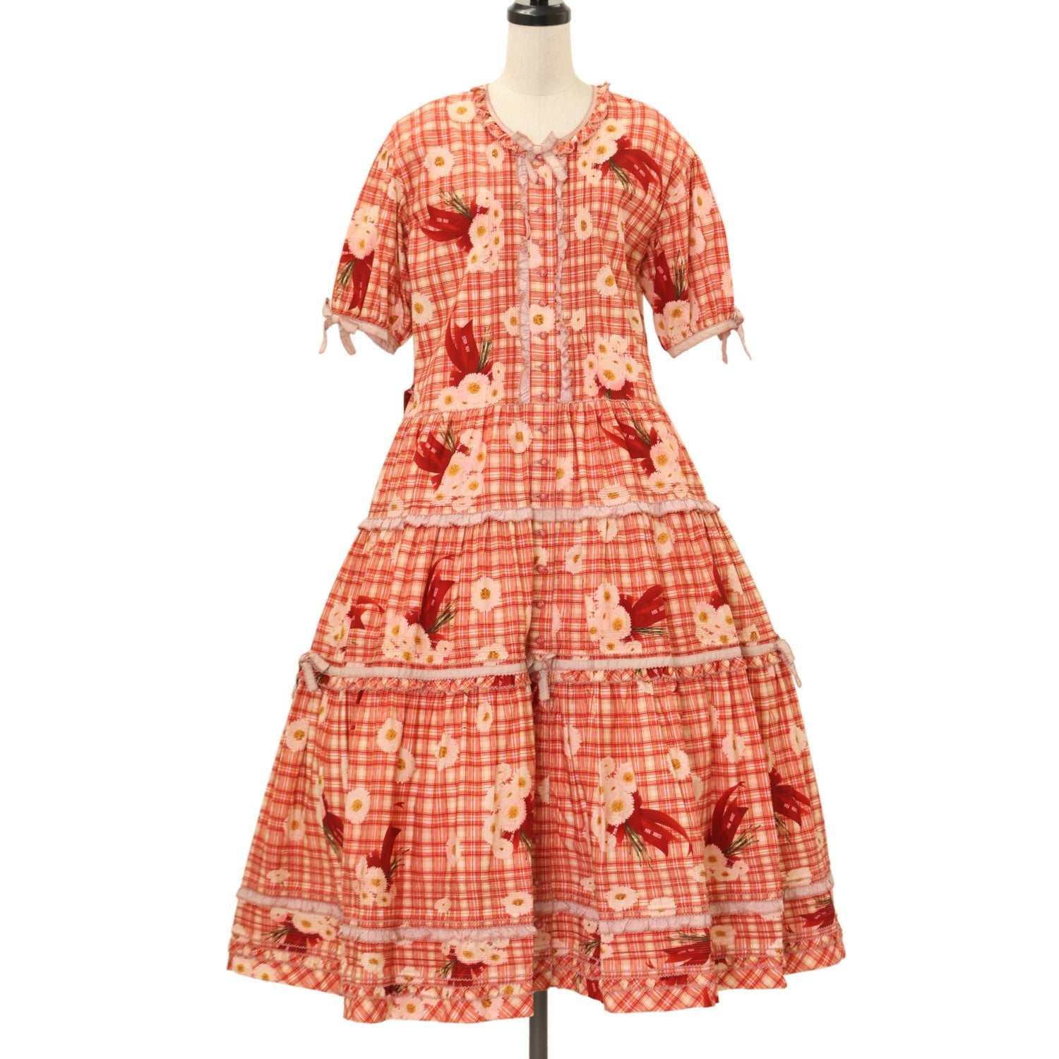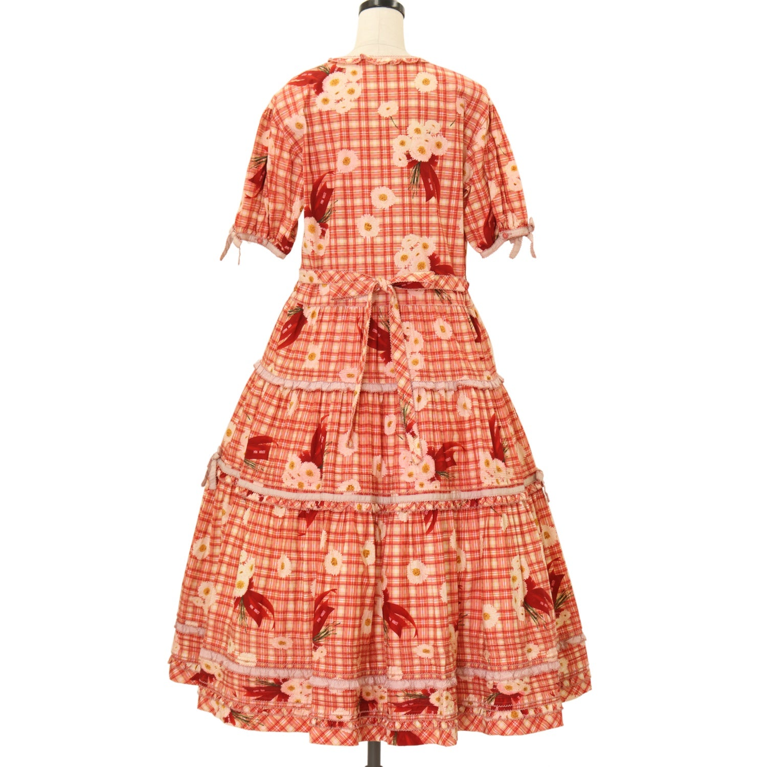【USED】ロゴリボンマーケットブーケチェックワンピース