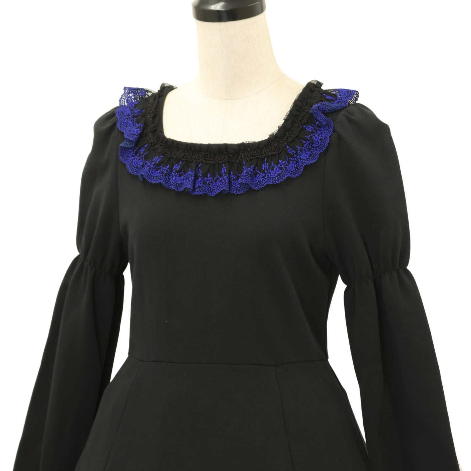 【USED】【9号】タイニーローズカトリーヌワンピース(長袖/黒×青)