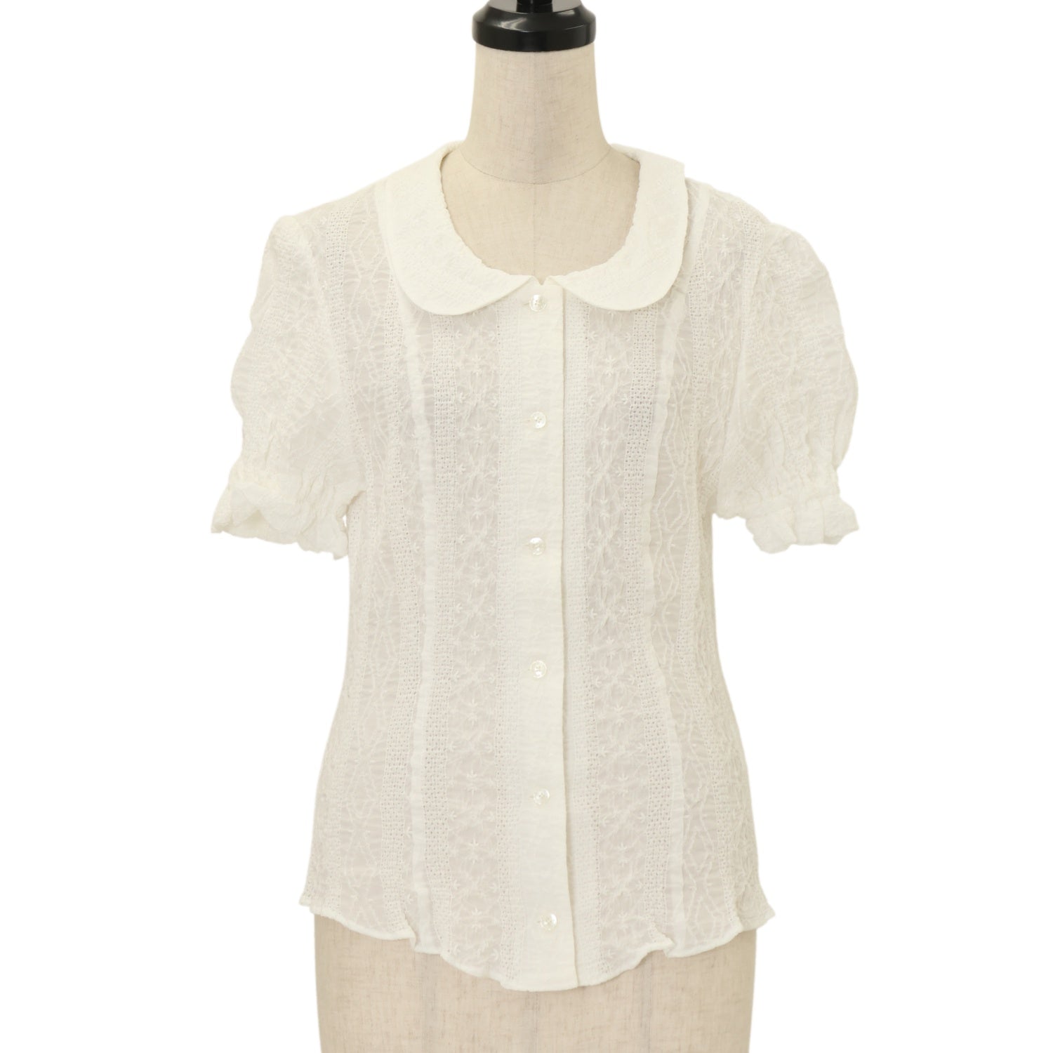 【USED】【Sサイズ】シュリンクレースブラウス