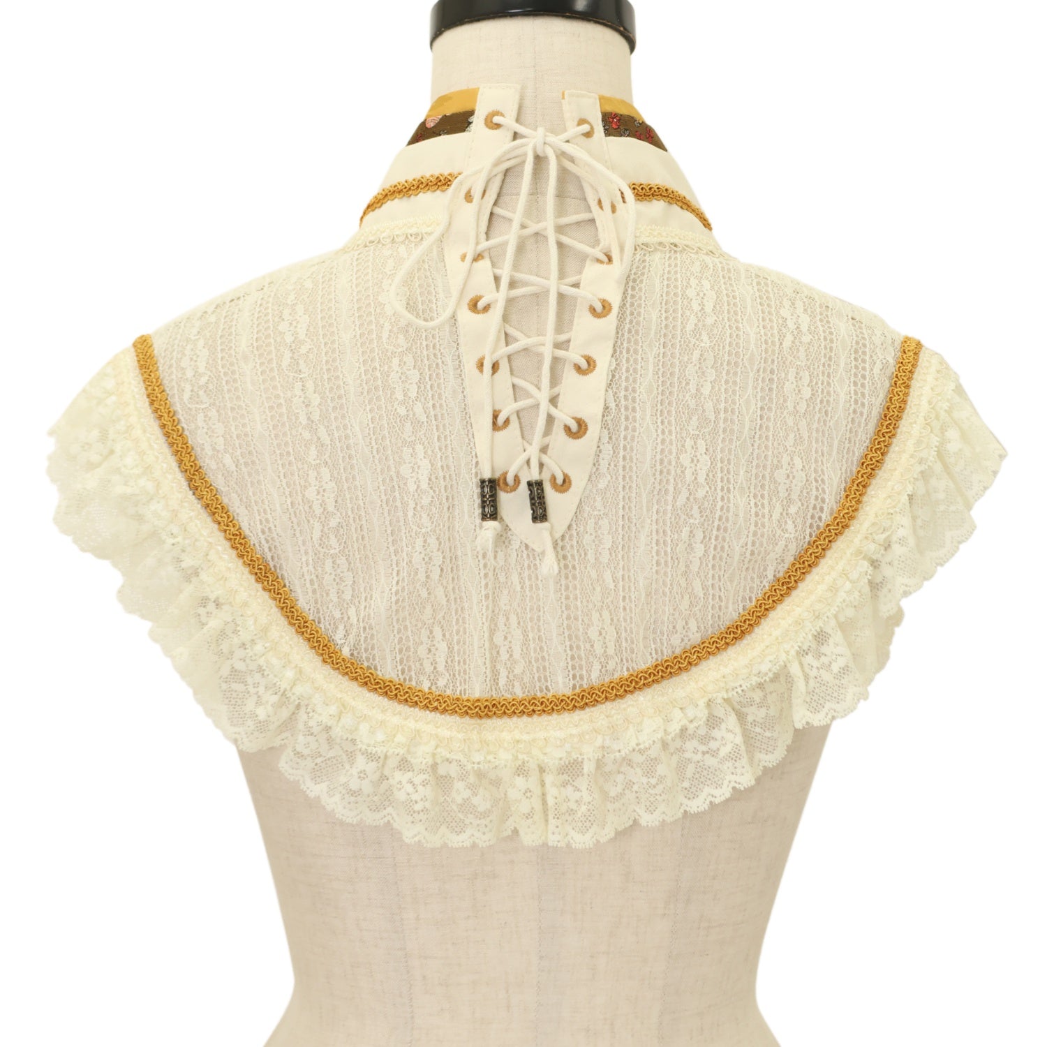 | 商品状態 | 使用感あり 襟ぐり・編み上げ紐一部に黄ばみ 左襟・編み上げ紐に汚れ |