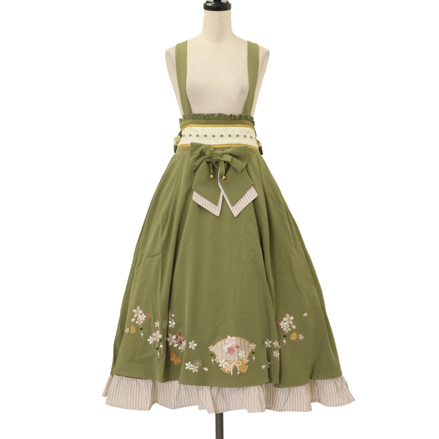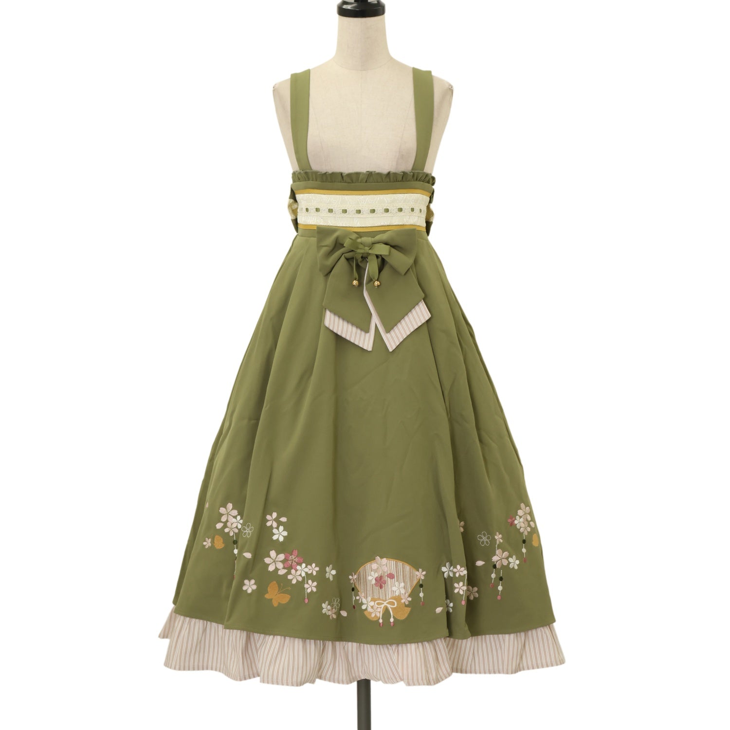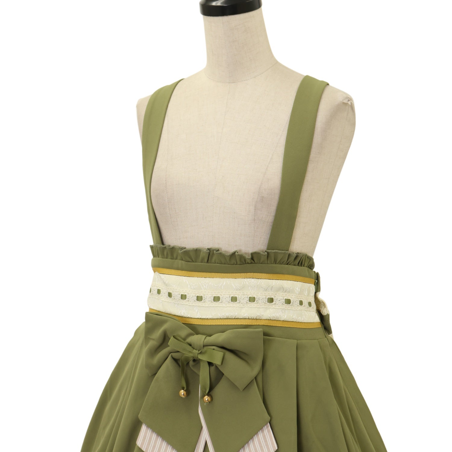 肩紐5段階で調節可能 ウエスト編み上げリボンで調節可能 ウエストリボンブローチ取り外し可能 |
