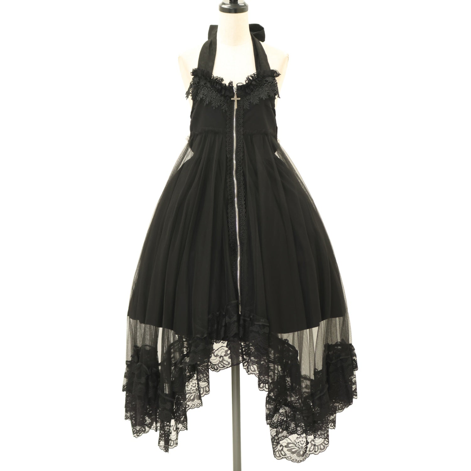 【USED】【MRCorset】CROSS ZIP HALTER NECK DRESS