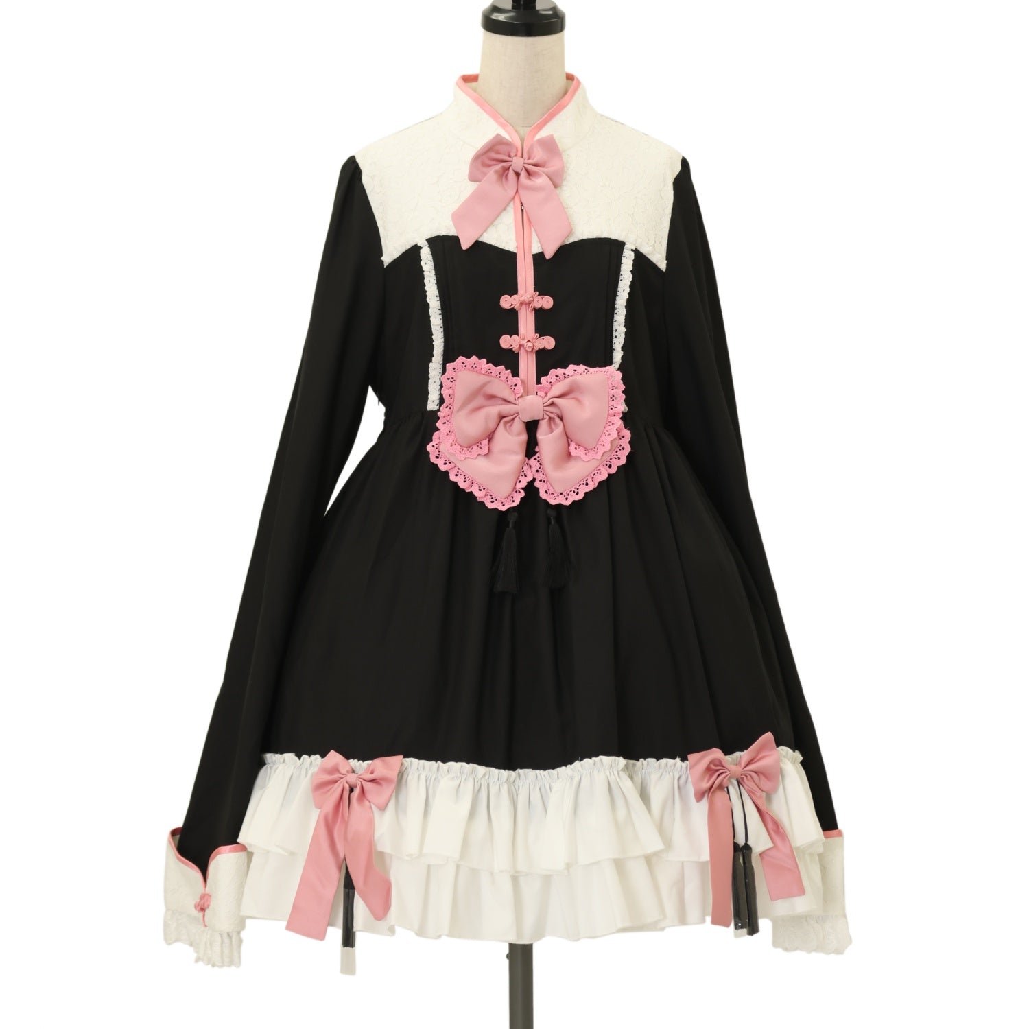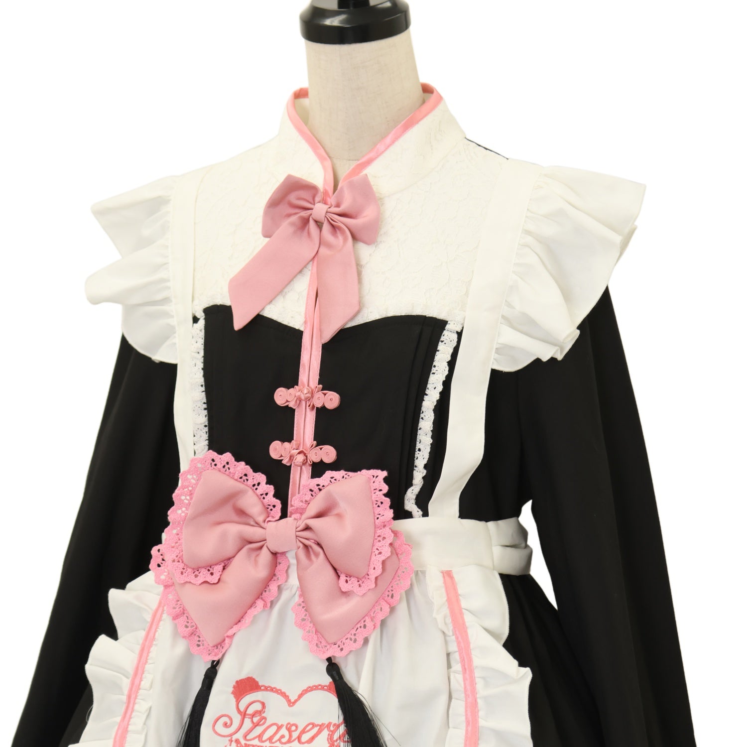 【USED】【Stasera/XXLサイズ】パンダメイド エプロン付きワンピースフルセット(黒×ピンク)