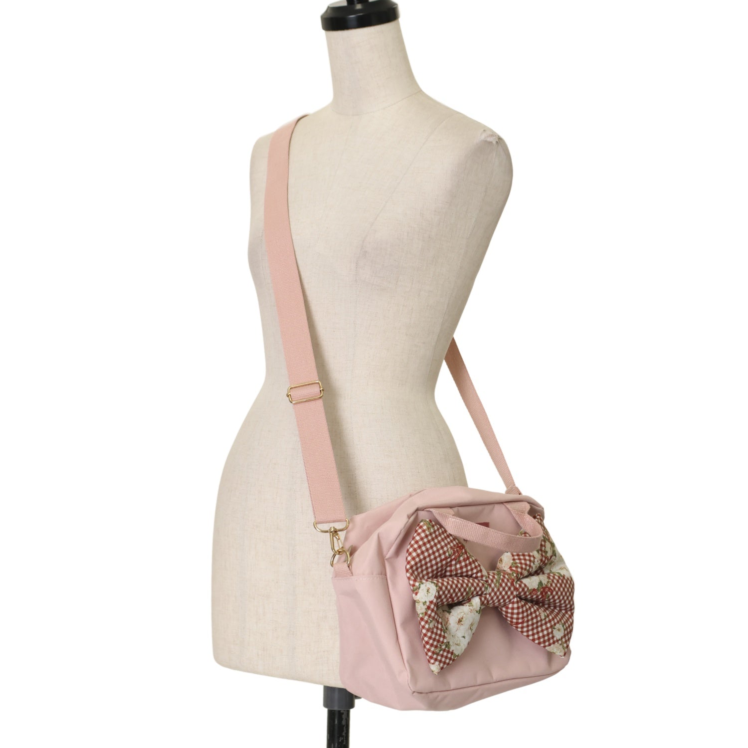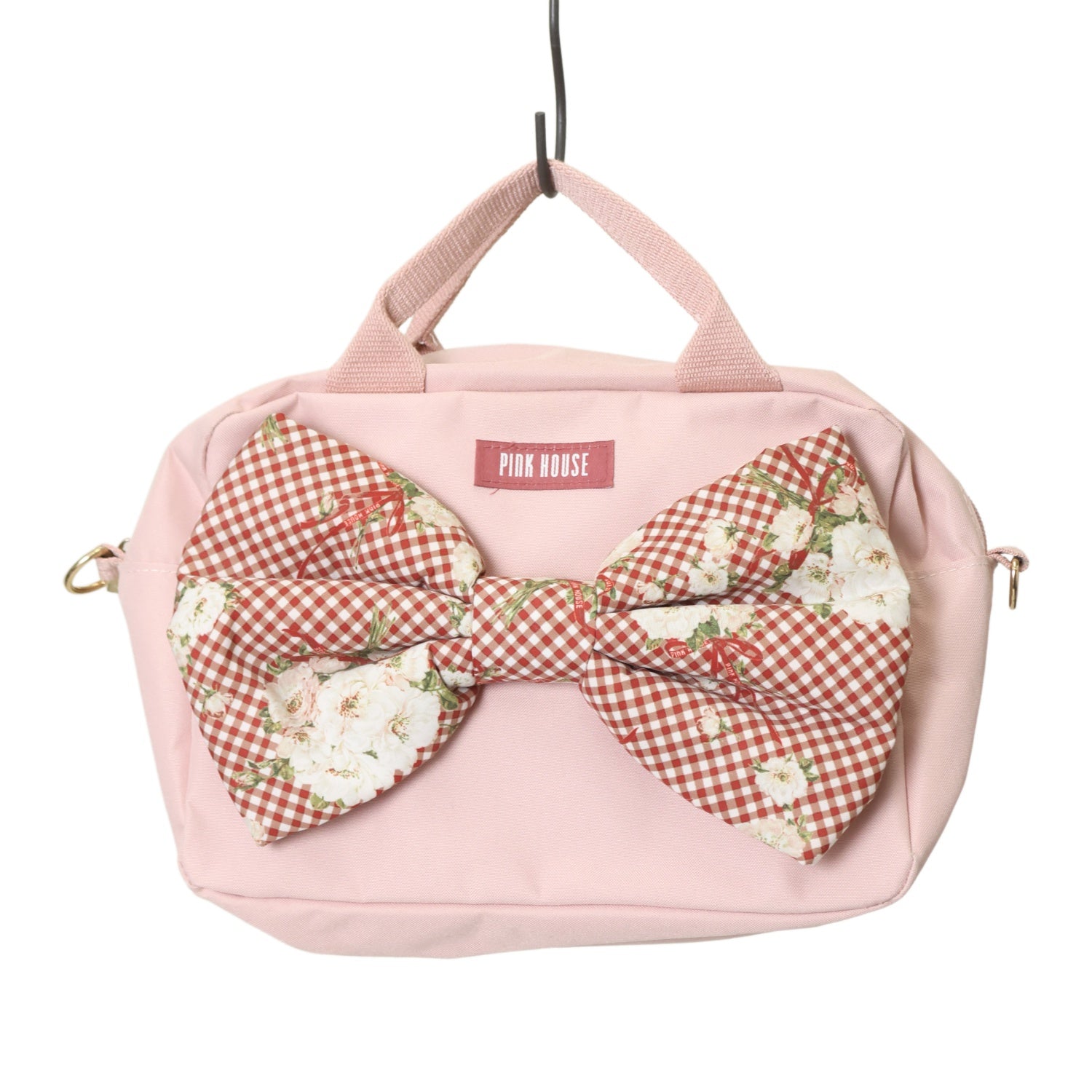 【USED】野ばらギンガム柄リボン付きショルダーバッグ