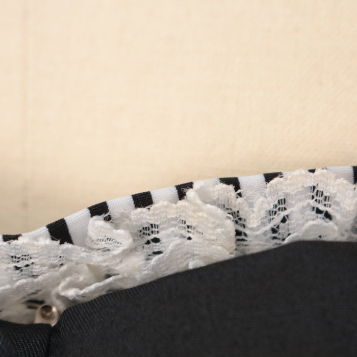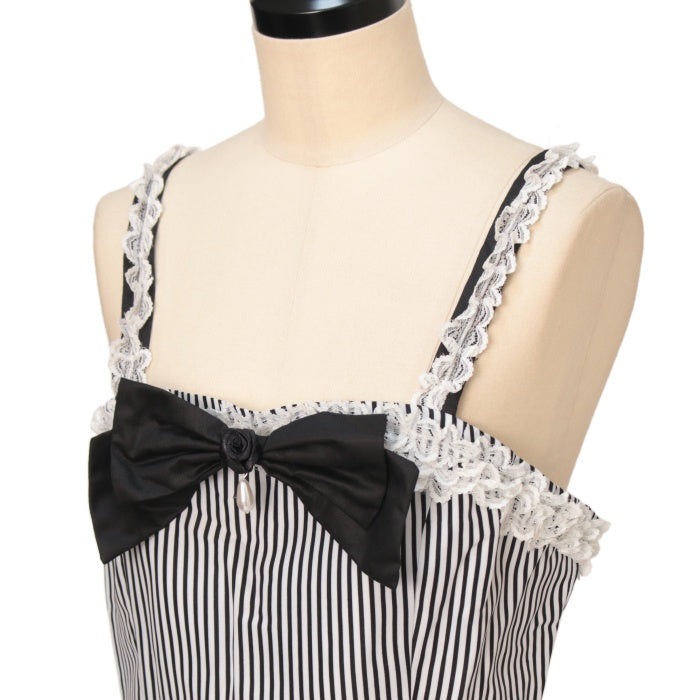 | 商品情報 | サイズM 丈:60-83cm 身幅:43.5cm ウエスト:36cm タグあり レースにくすみ サイズその他:品質表示タグなし 胸元リボンブローチ取り外し可能 |