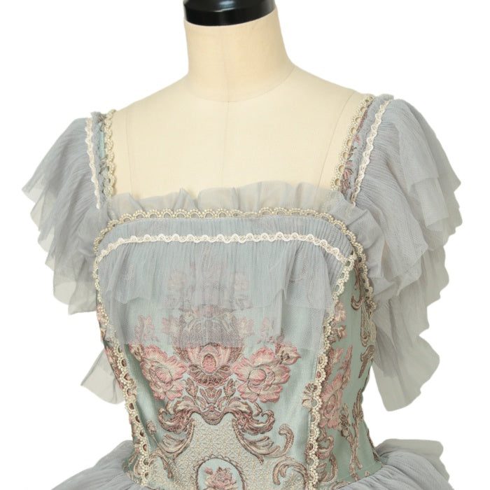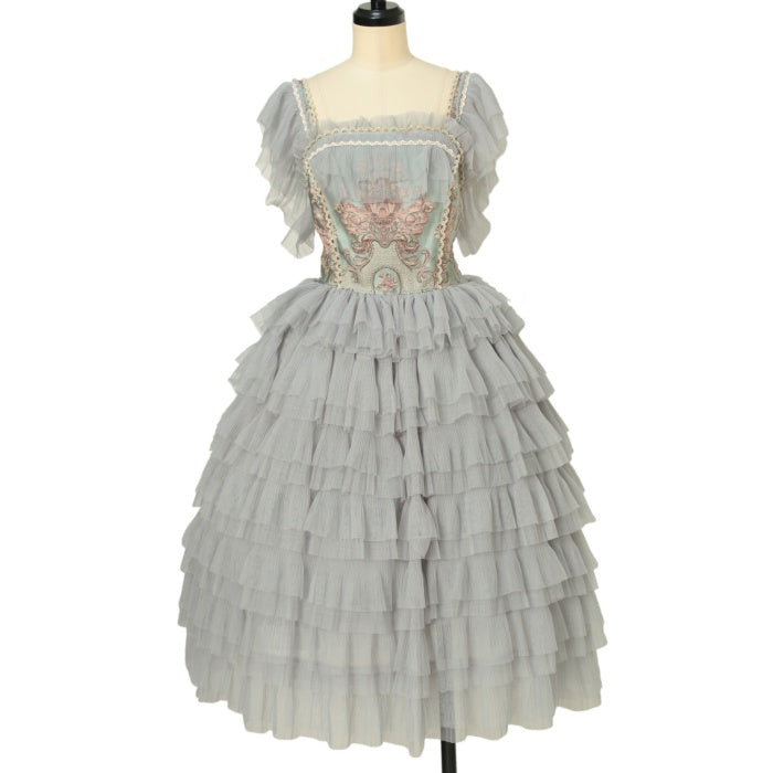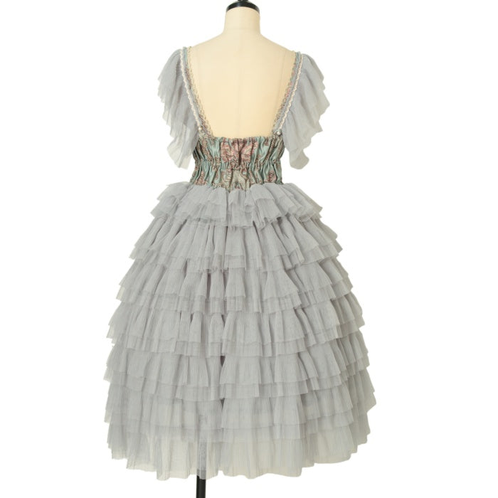 【USED】【Sサイズ】刺繍チュールティアードジャンパースカート