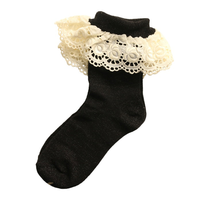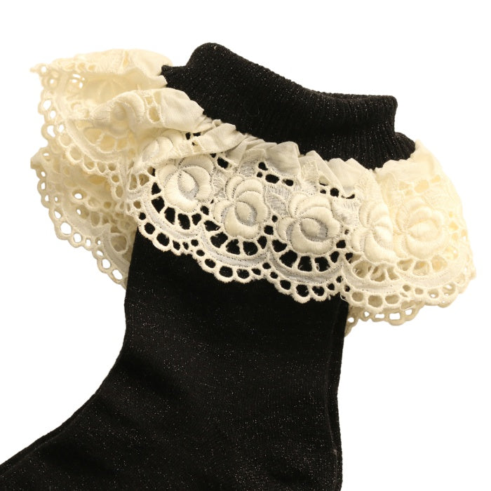 【USED】【Emily Temple】バラレースラメクルー丈ソックス