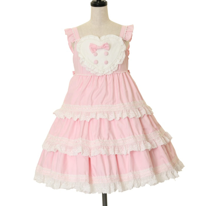 【USED】【Mサイズ】Doll story ハート胸当て三段フリルジャンパースカート