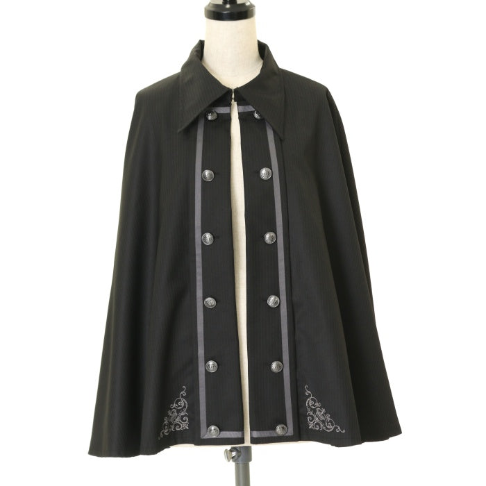【USED】王冠刺繍インバネス(黒グレーストライプ)
