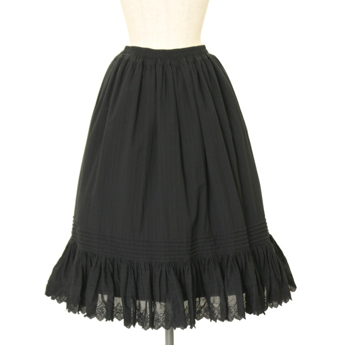 | 商品状態 | 使用感あり やや毛羽立ちあり ウエストゴムのギャザーに沿って薄い白い変色あり 裾レース・右サイド裾ピンタックにヨレあり |