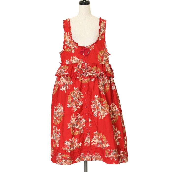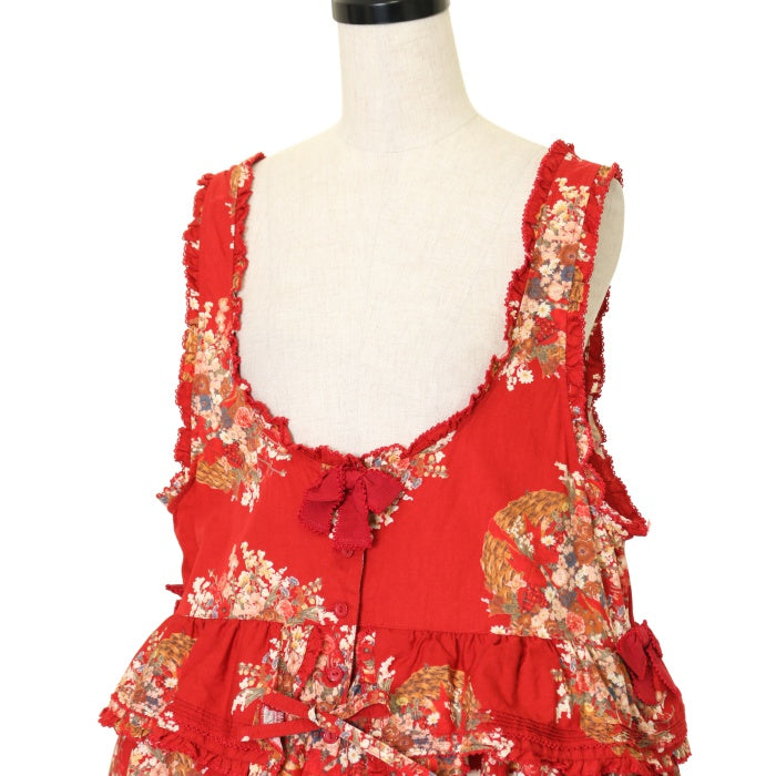 【USED】フラワーバスケット柄ペプラムリボンジャンパースカート