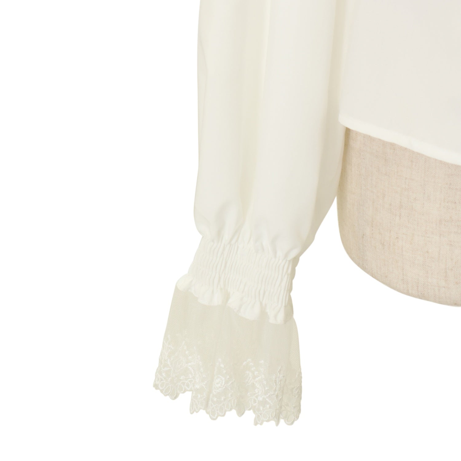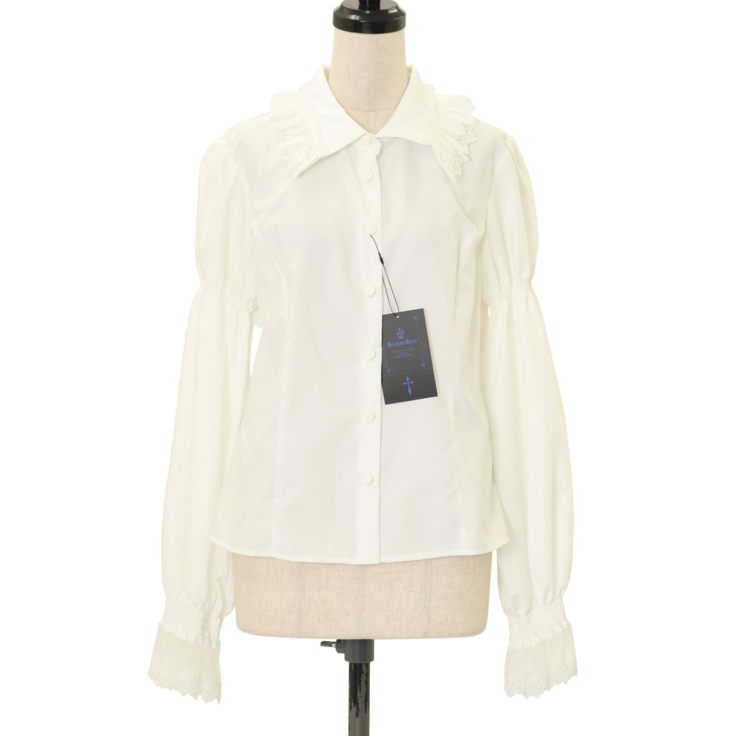 【USED】【9号】Cross Rose Gardenシャーリングスリーブブラウス(白×白)