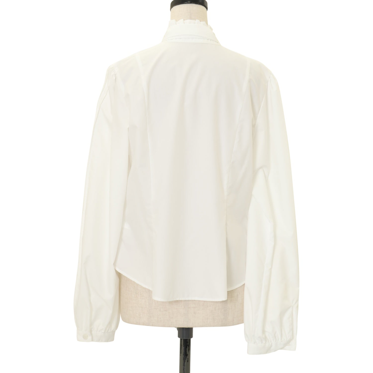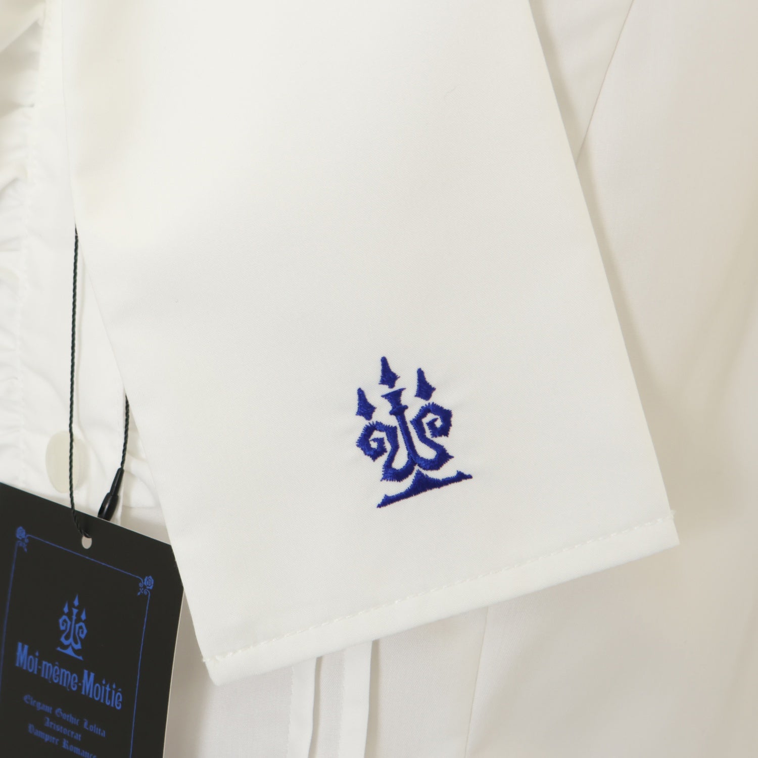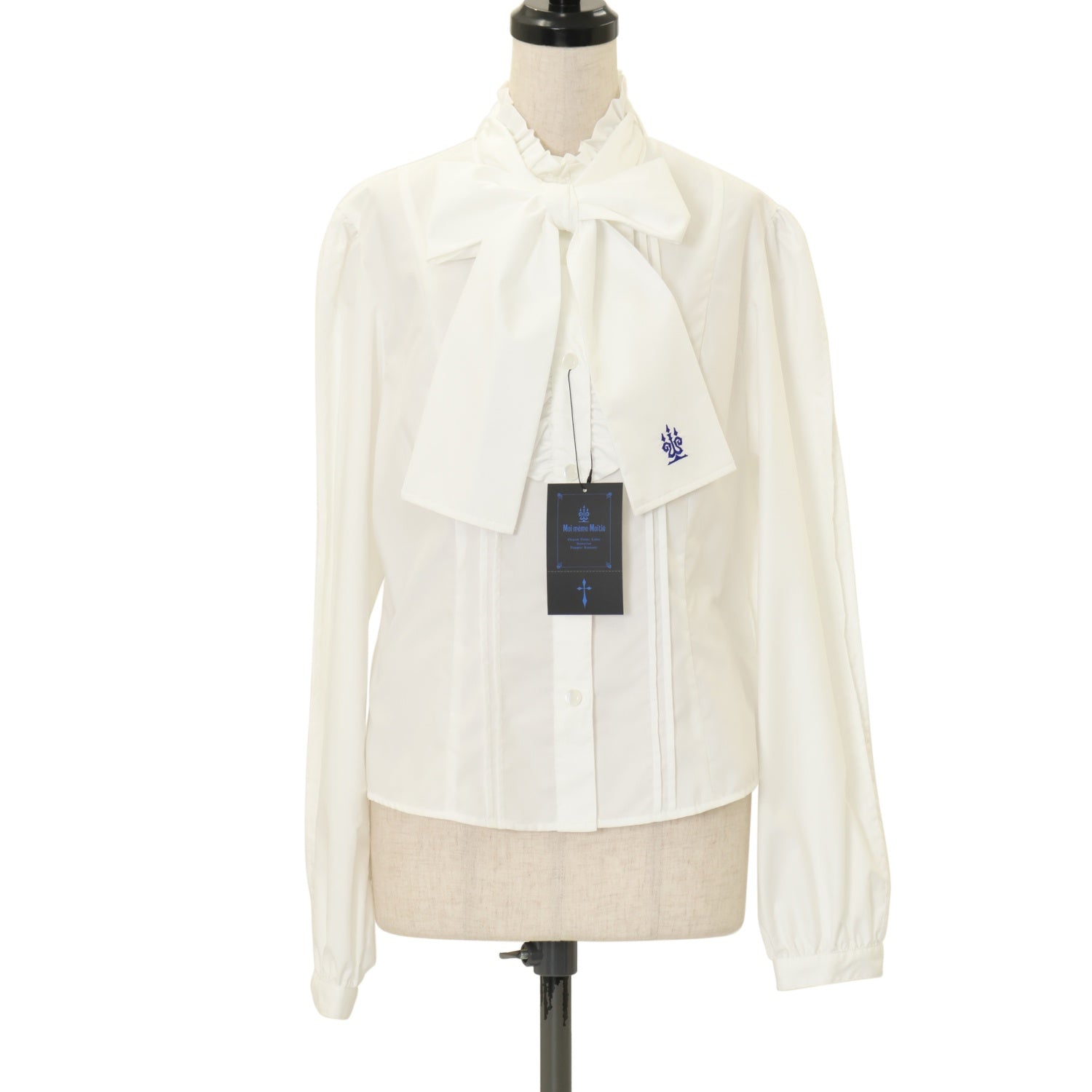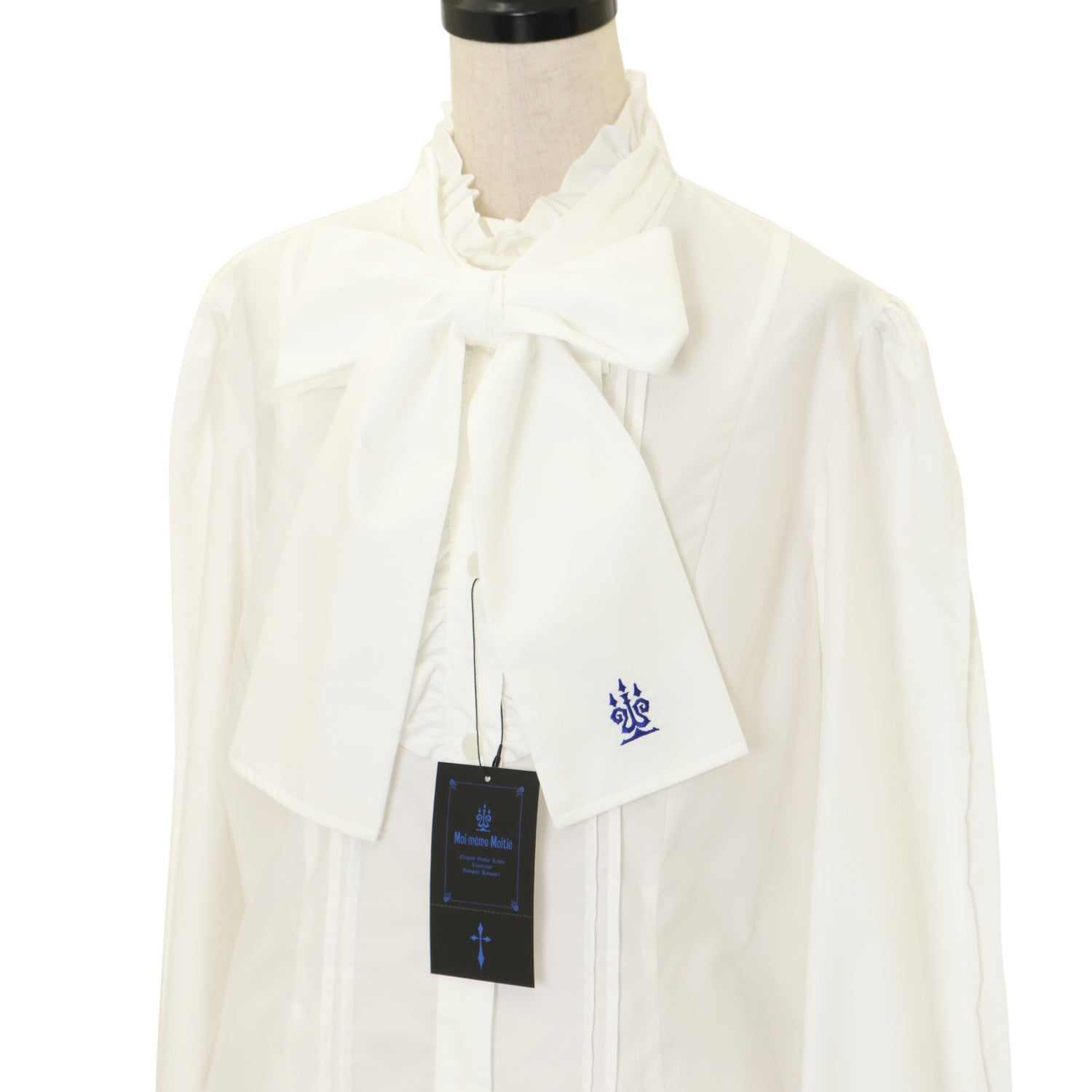 【USED】【13号】燭台刺繍リボンタイブラウス(白×青)