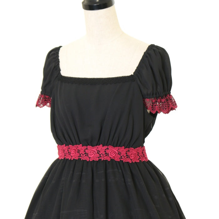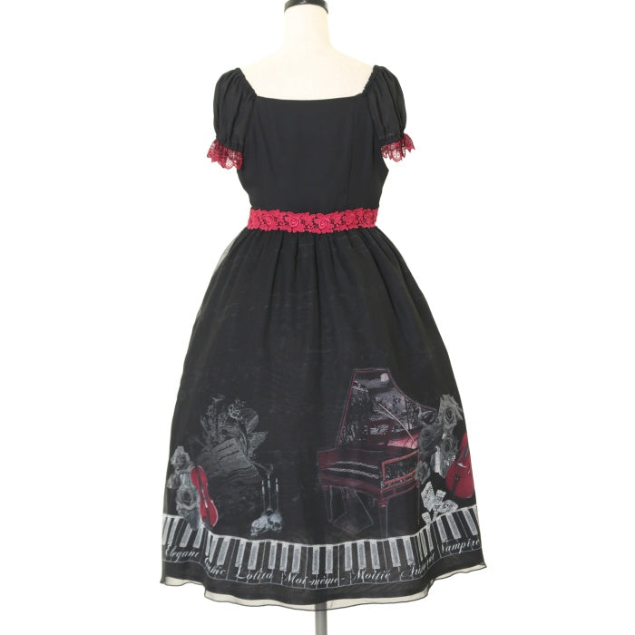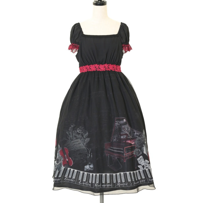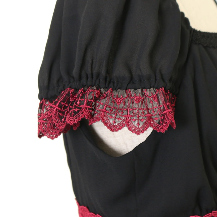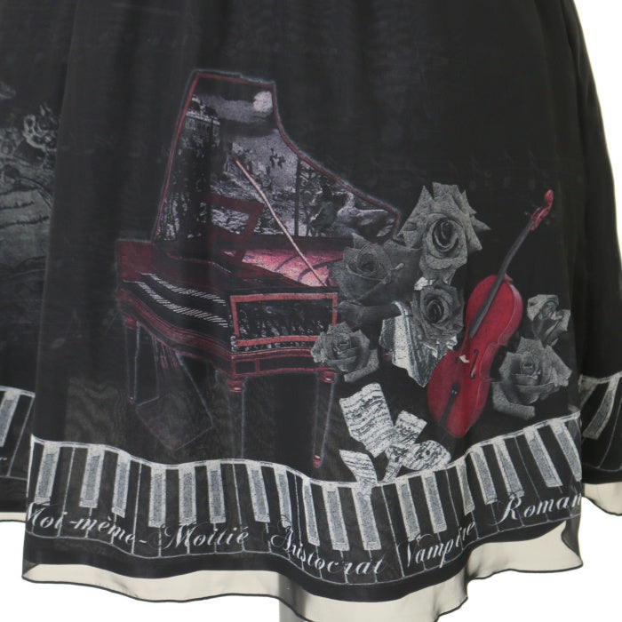 【USED】チェンバロ三重奏プリントシフォン半袖ロングワンピース