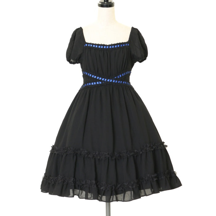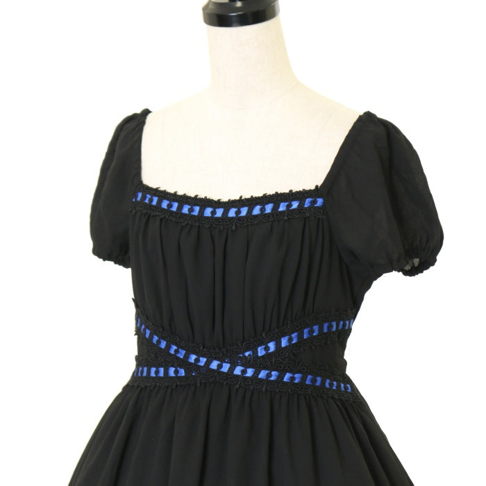【USED】【サイズ2】クロスギャザーワンピース(ブラック×ネイビー)