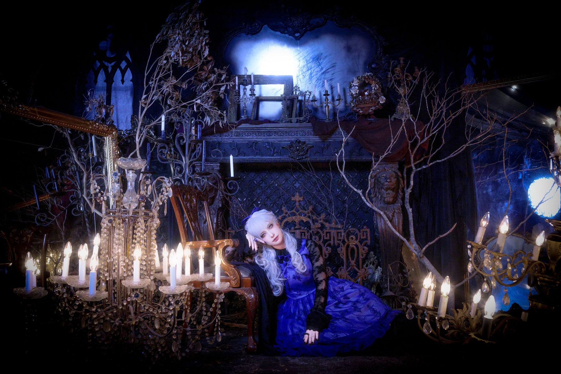 圆领处点缀了蝴蝶和十字架蕾丝。