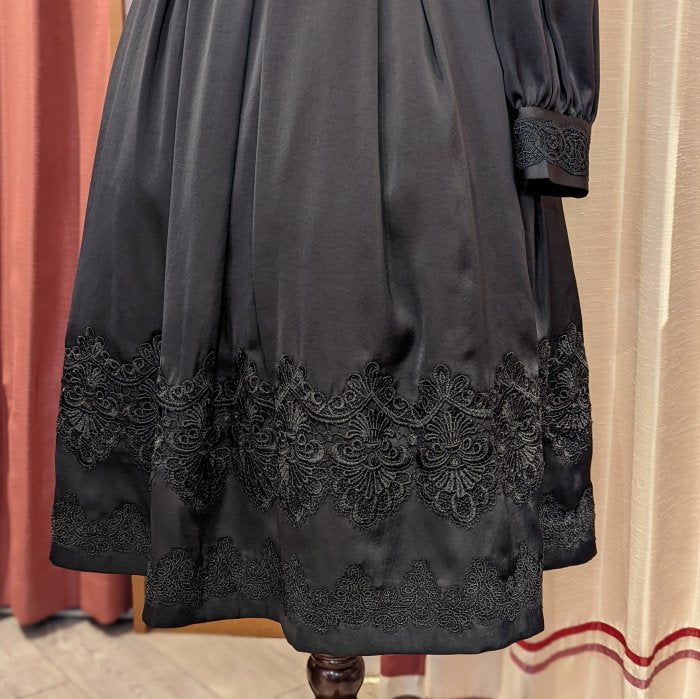 ほんのりと光沢のあるブラックのサテン生地で落ち着いた大人の印象に。