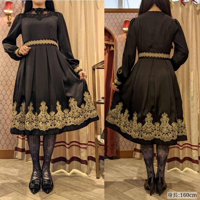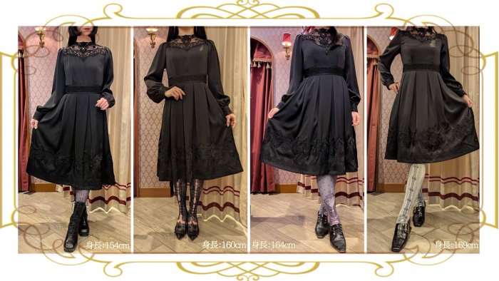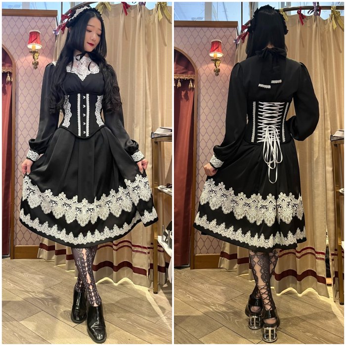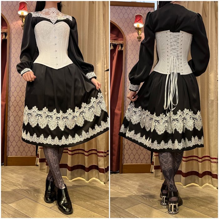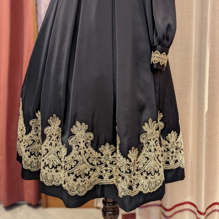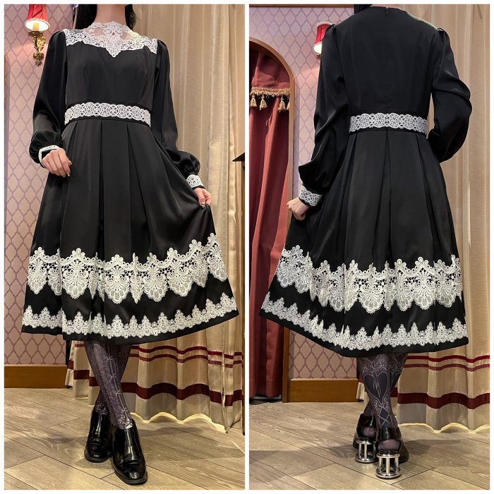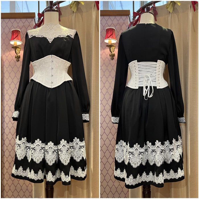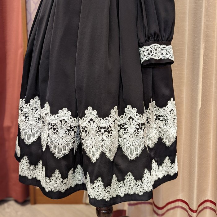 ウエスト、カフス、裾部分のレースデザインはブラック、ホワイトとは異なります。