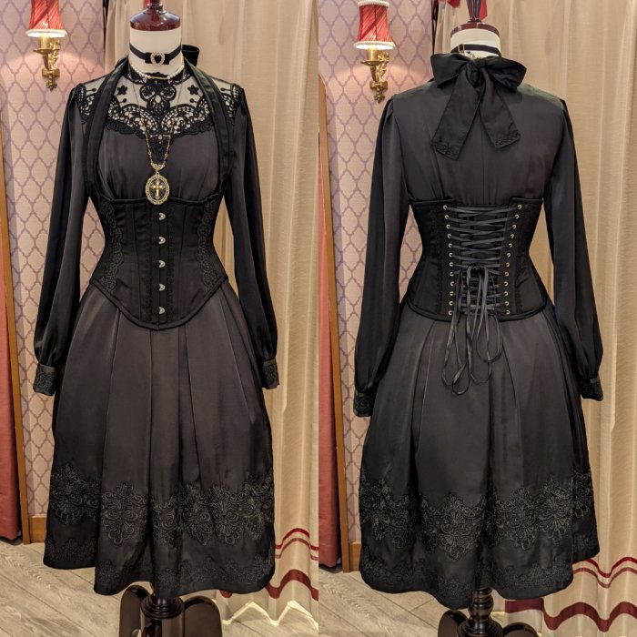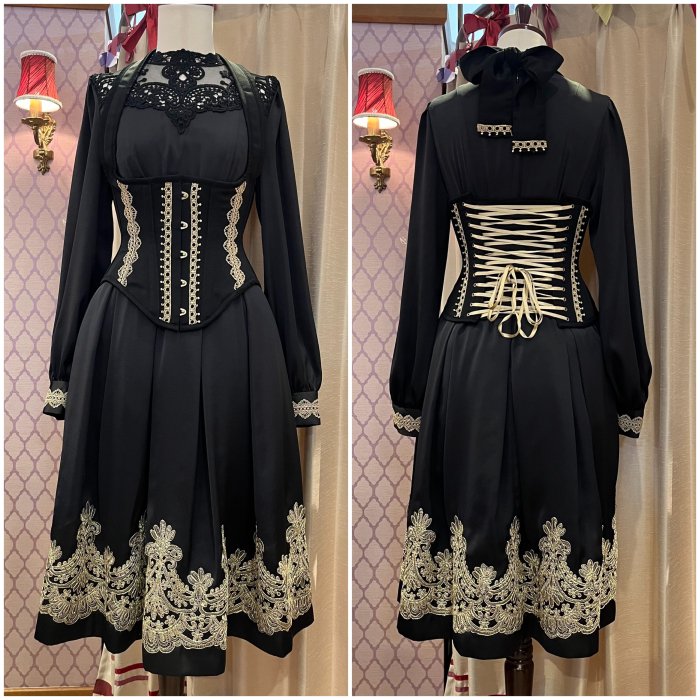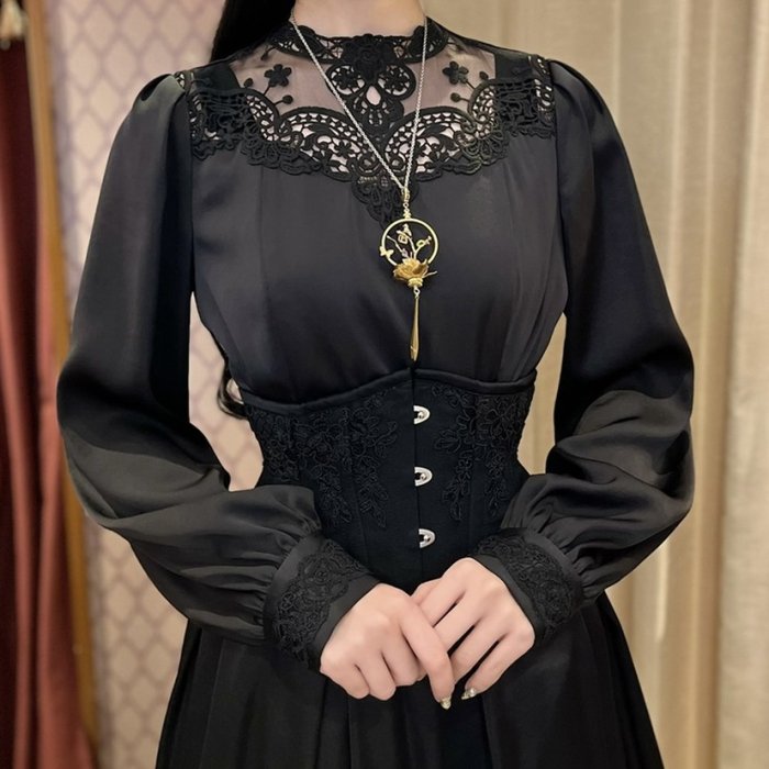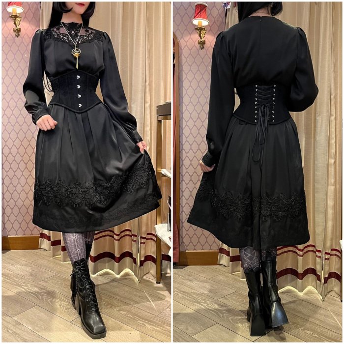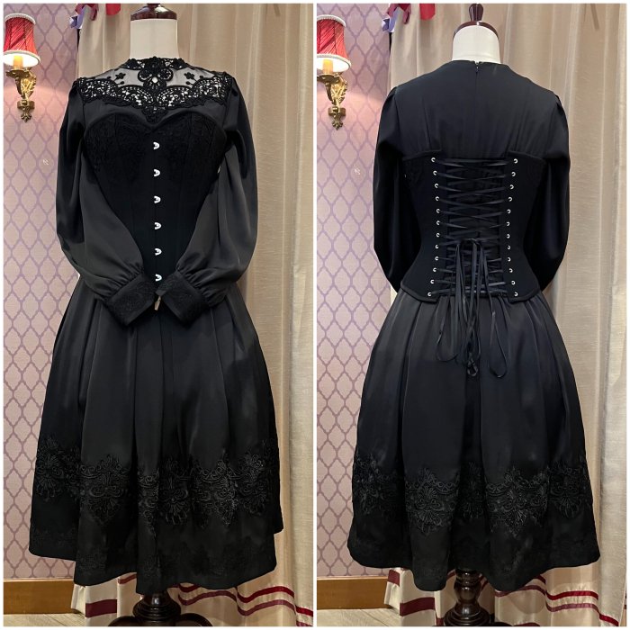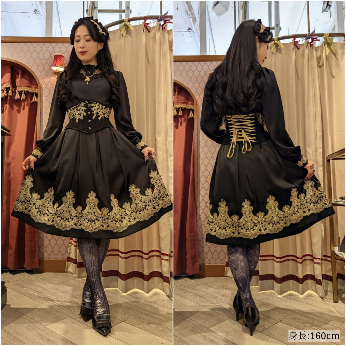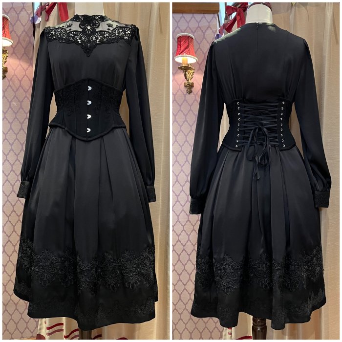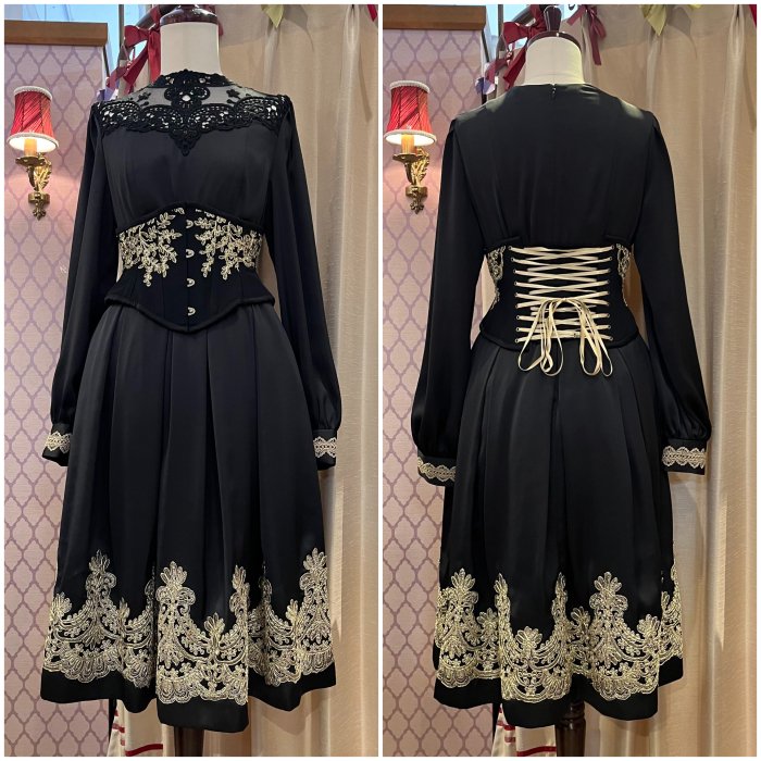 ウエスト、カフス、裾部分のレースデザインはブラック、ホワイトとは異なります。