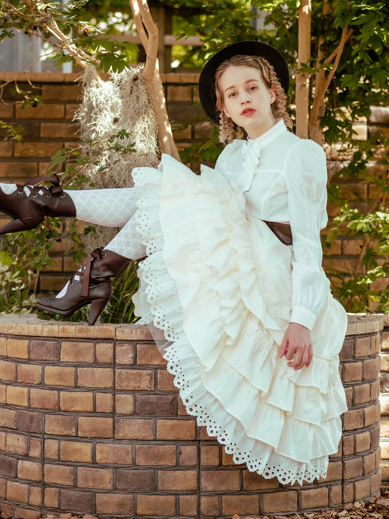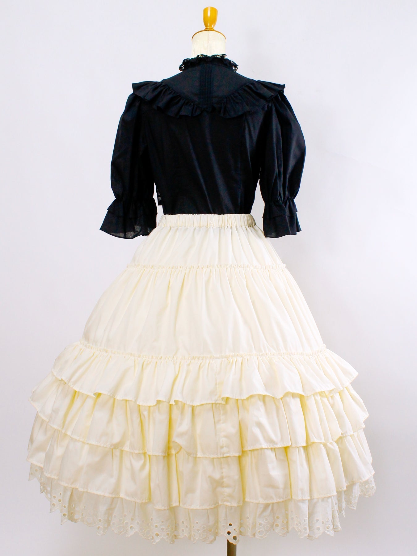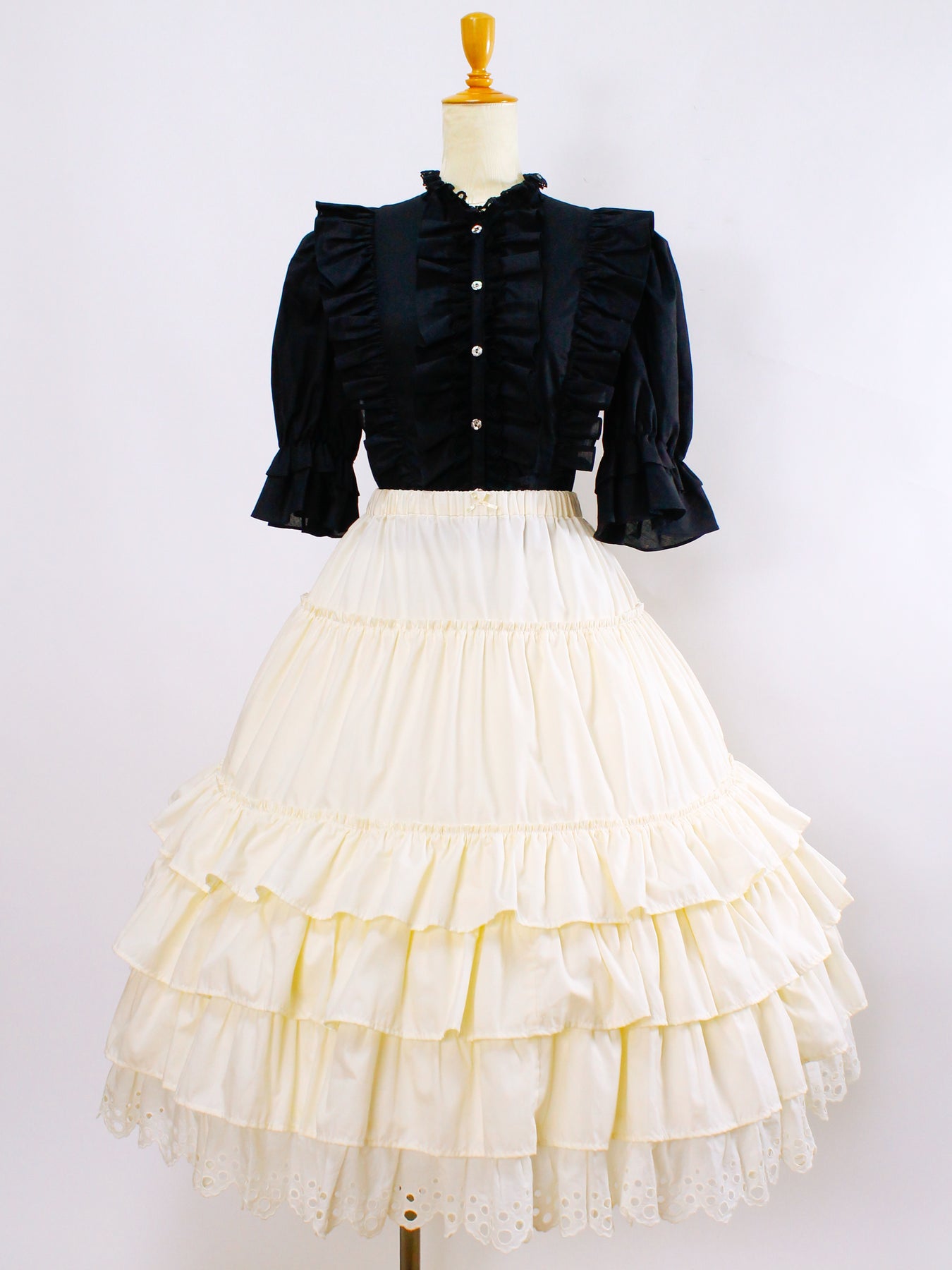 生地とレースもふんだんに使用し、裾の重量感たっぷりもたせた、シンプルなスカートとしても、ペチコートとしてもお召し頂ける1着です。