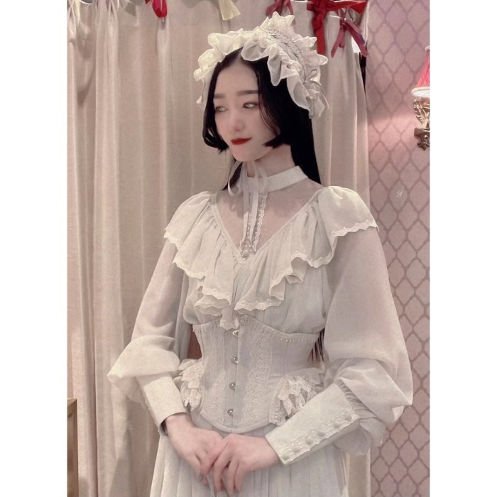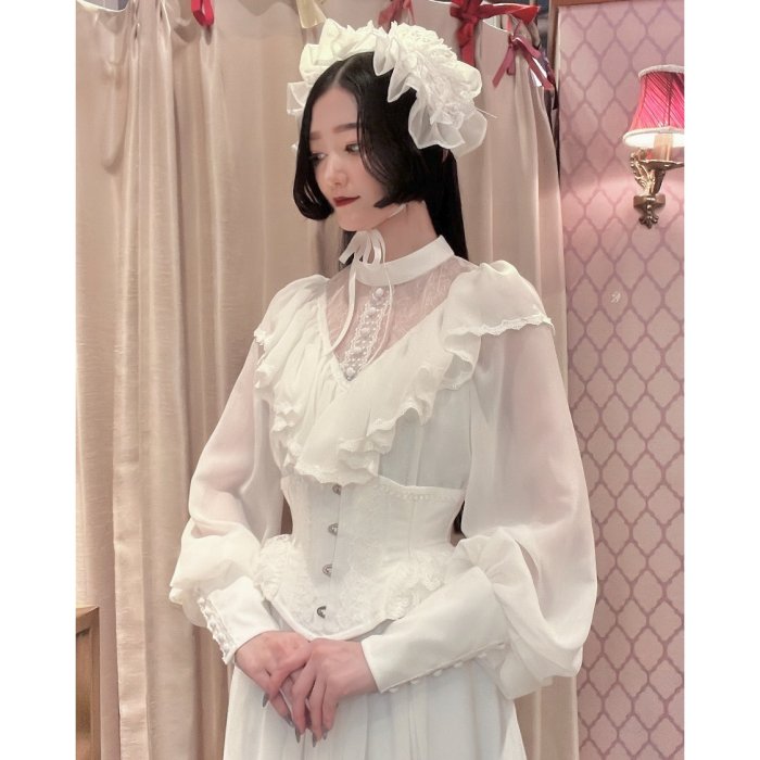 ヨーク部分は繊細なレース生地を使用、上品な透け感をお楽しみ頂けます。