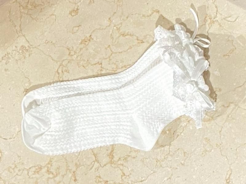 ★サテンの巻きバラがついた華やかでキュートなショートソックスです。