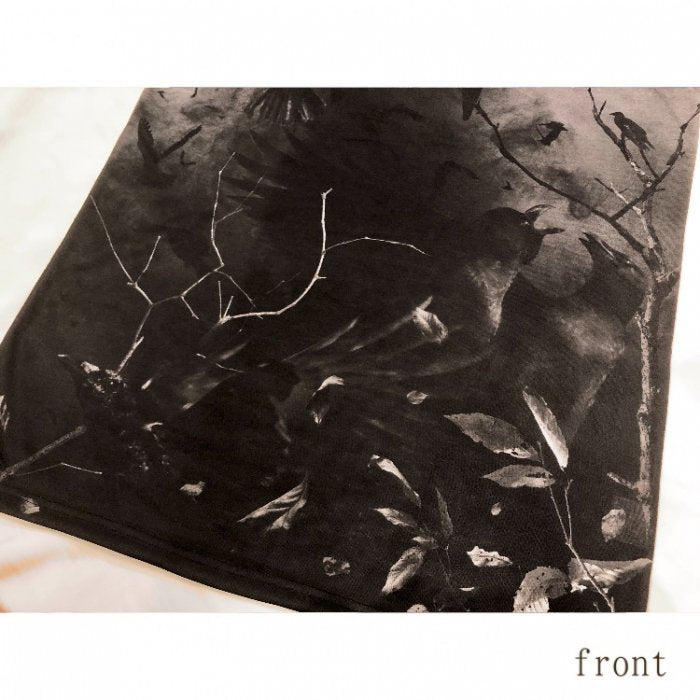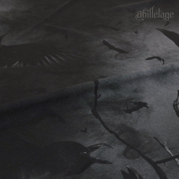 煙立ち込める風景の中、複数の鴉が羽ばたくデザインが印象的な「クロウ」