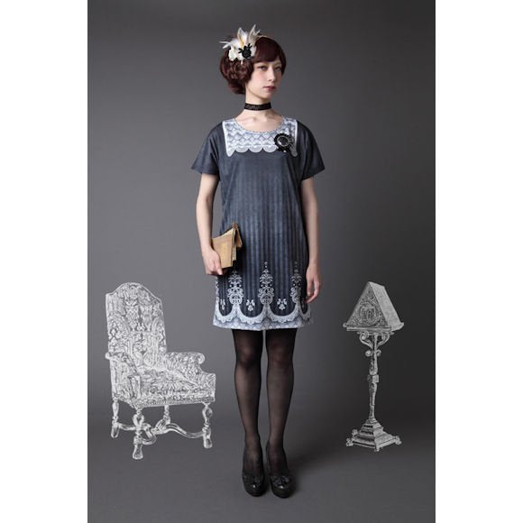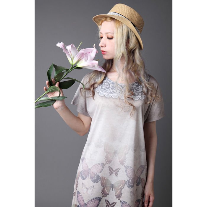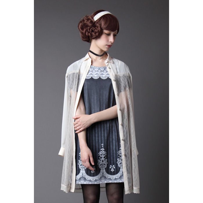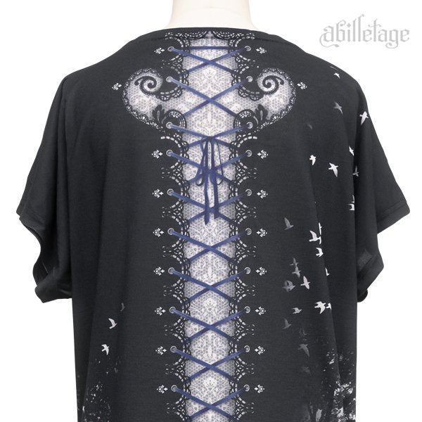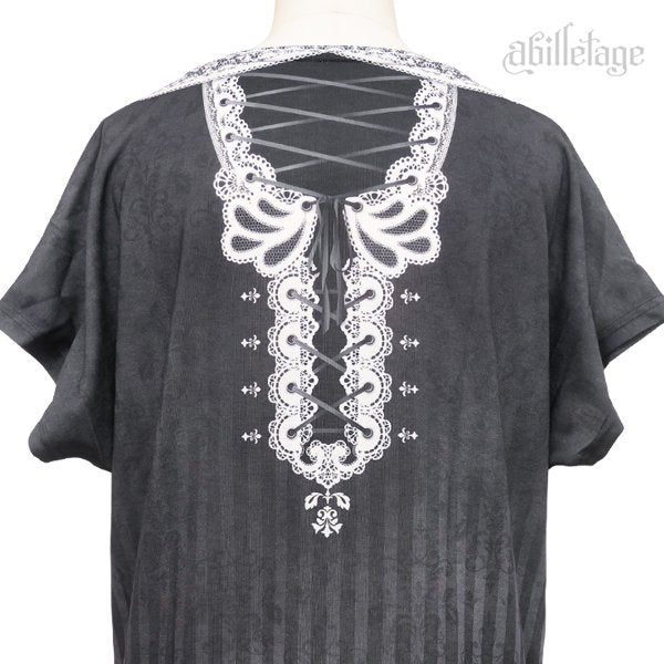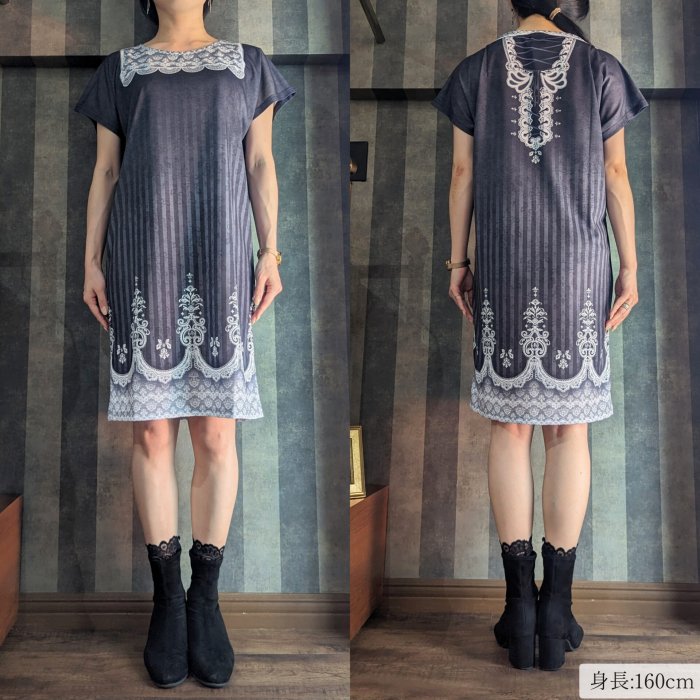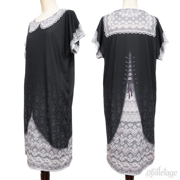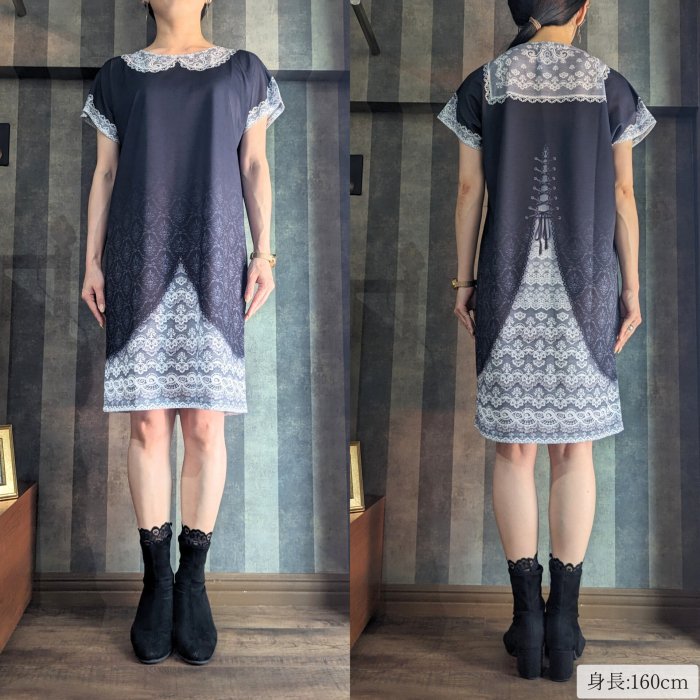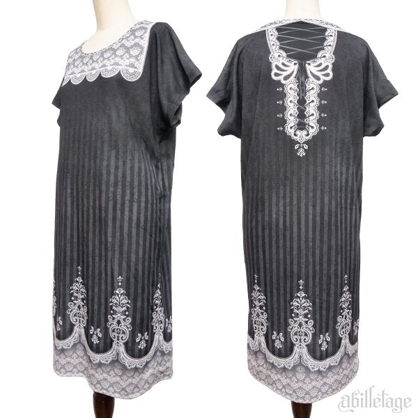 レースや編み上げも全て書き下ろしのプリントで表現しているため、暑い夏も一枚さらりと着るだけでお洒落に♪