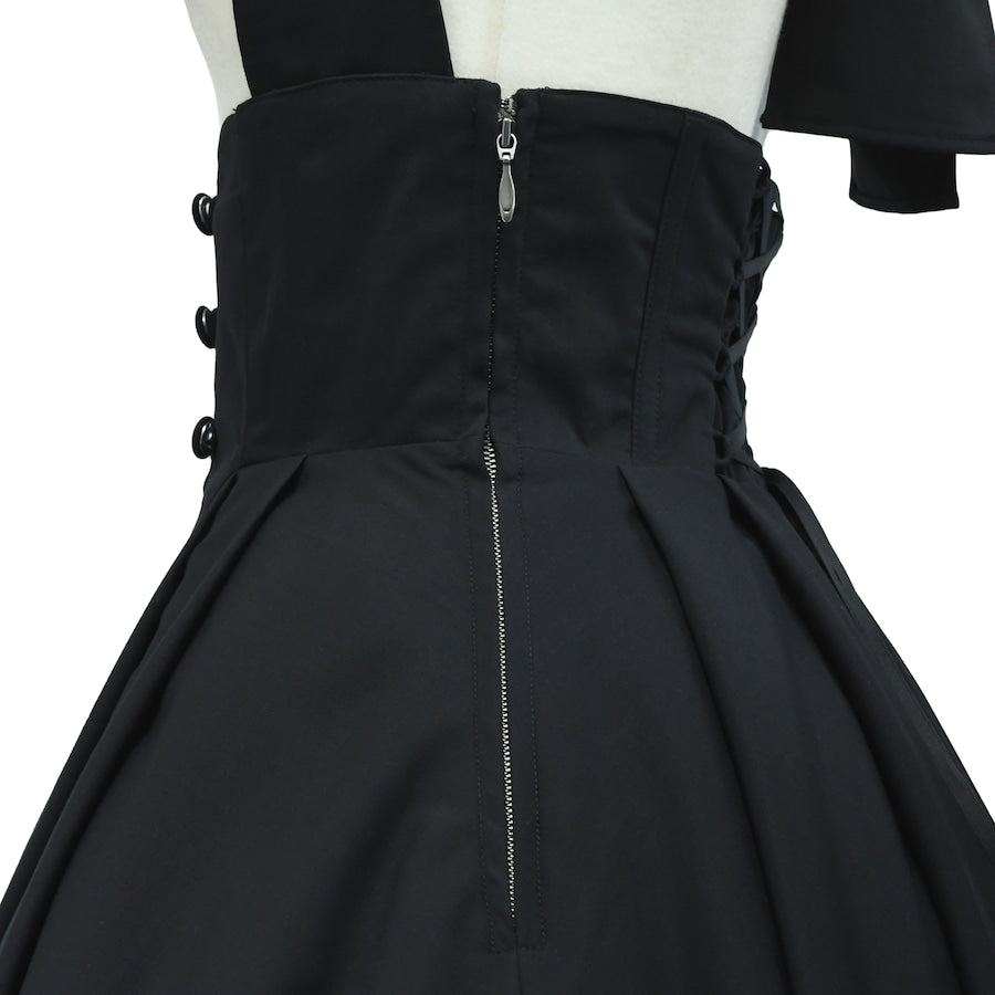 ウエストはコルセット仕様になっており、前後に2本ずつのボーン+バックセンターゴム仕様+レースアップの為ウエストにもしっかりフィット。